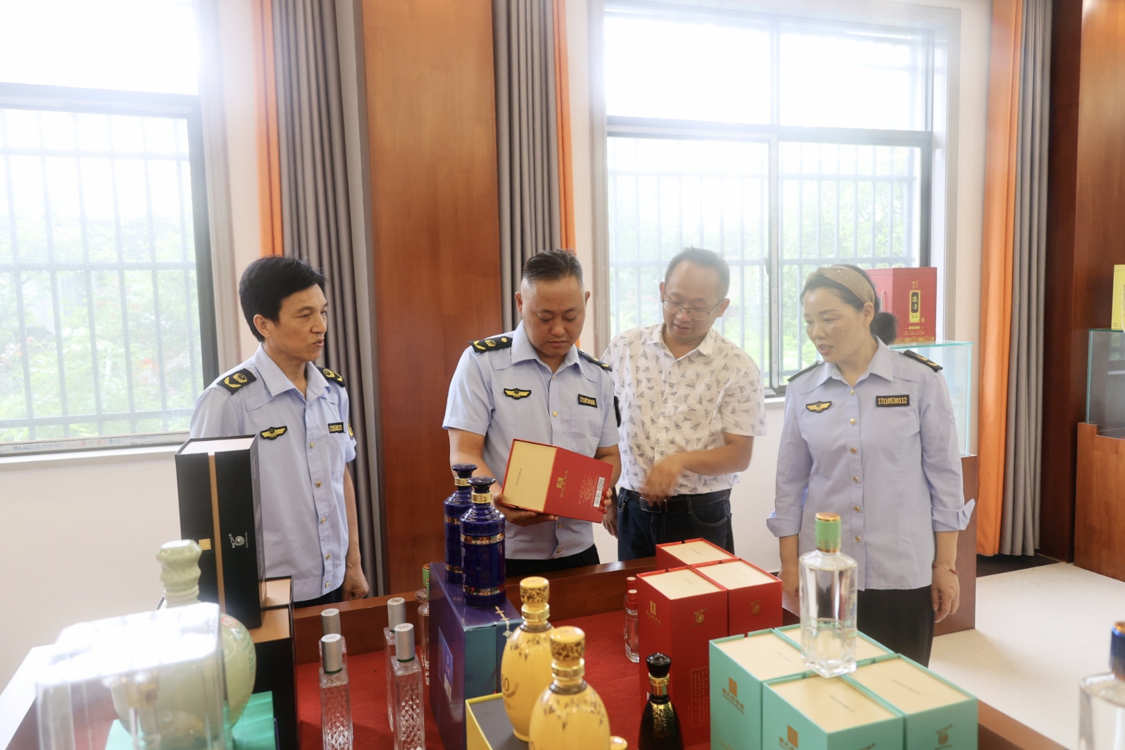 在湖北百丈潭酒业有限公司,执法人员对酒产品包装盒、纸箱、酒瓶等进行检查,并通过手机扫码查看产品是否存在“特供酒”标签或其他标签标识,是否擅自在酒类包装上标注“特供酒”标识,督促经营者增强法律意识,诚信合法经营。