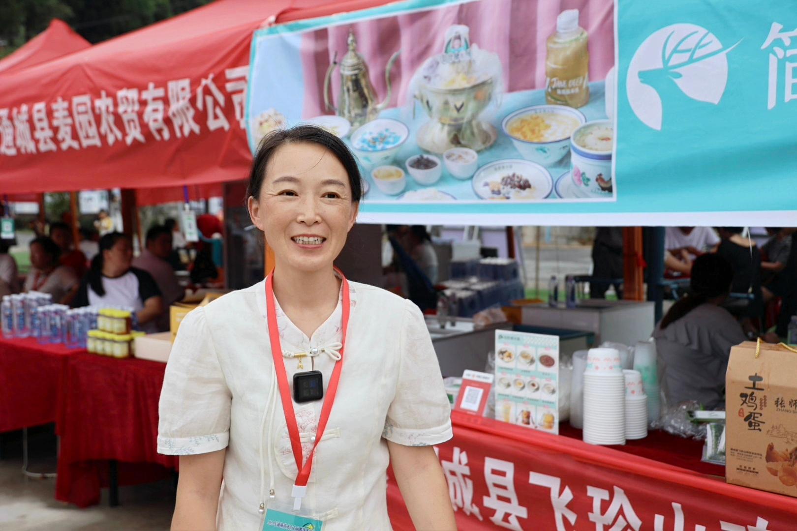 通城县飞珍山鸡专业合作社负责人 孔艳珍:非常荣幸可以参加这次的展销会,我们公司主要养殖山鸡、土鸡,销售土鸡蛋等特色农产品,这次展销会是一次特别难得的机会,可以让游客了解我们通城土特产,今天摊位上生意非常火爆,真的是收获满满。