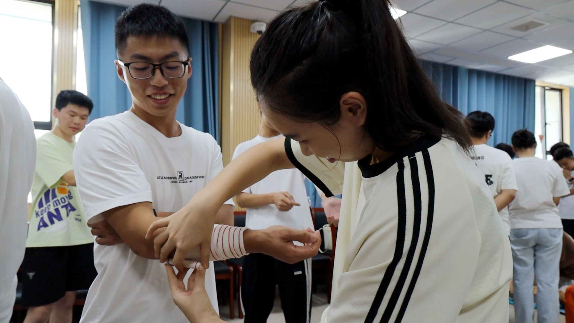 培训现场,县红十字会应急救护培训师资通过理论讲解与实操指导相结合的方式,向学员们科普常见急症表现、识别及处置操作要领,并针对心肺复苏、AED使用和包扎等重点内容进行了讲解演示。通过互动答疑、示范指导、模拟训练、考评检验等方式,保障了培训质效,让学员真正掌握应急救护知识核心要领和实操手法,真正做到学则能会、会则能用。