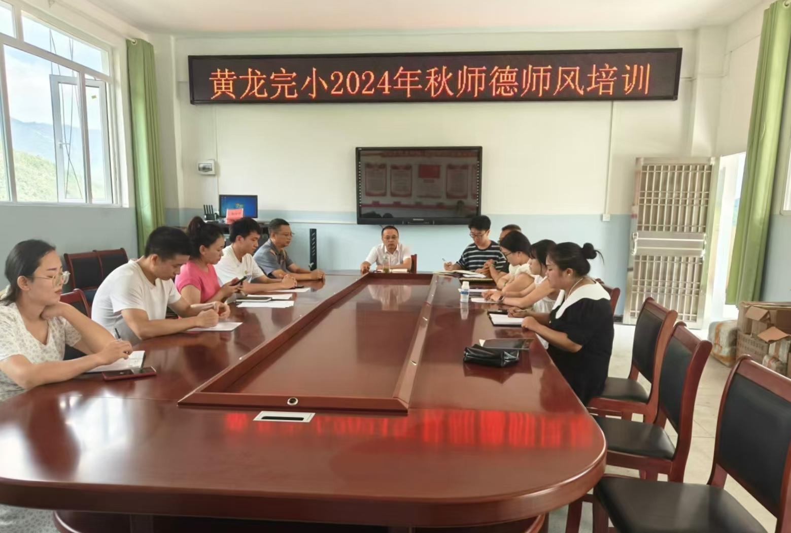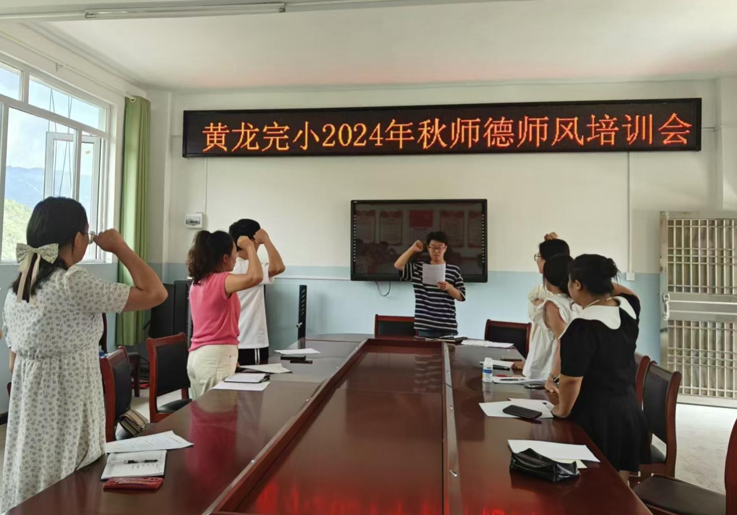 【通讯员 杜宇】8月30日上午,通城县麦市镇黄龙完小全体教师齐聚会议室,举行以“强师风,铸师魂,树立师德模范,潜心教书育人”为主题的新学期师德师风培训活动,进一步加强师德师风建设。