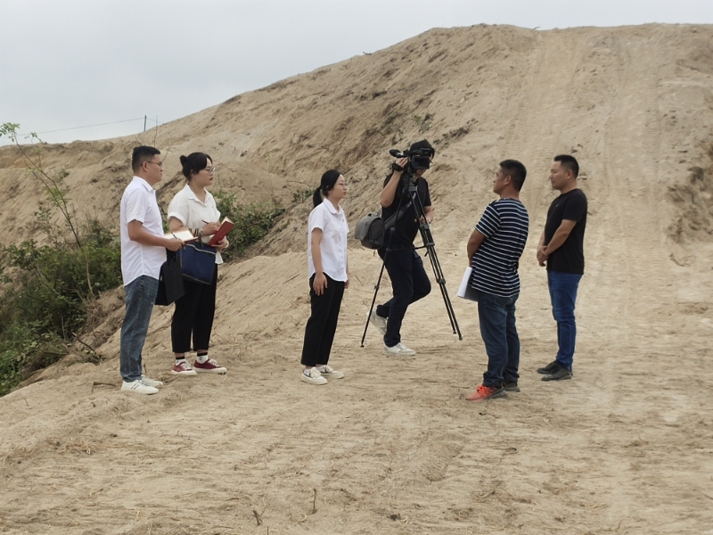 图为纪检、宣传部门联合对耕地图斑整改现场进行宣传报道