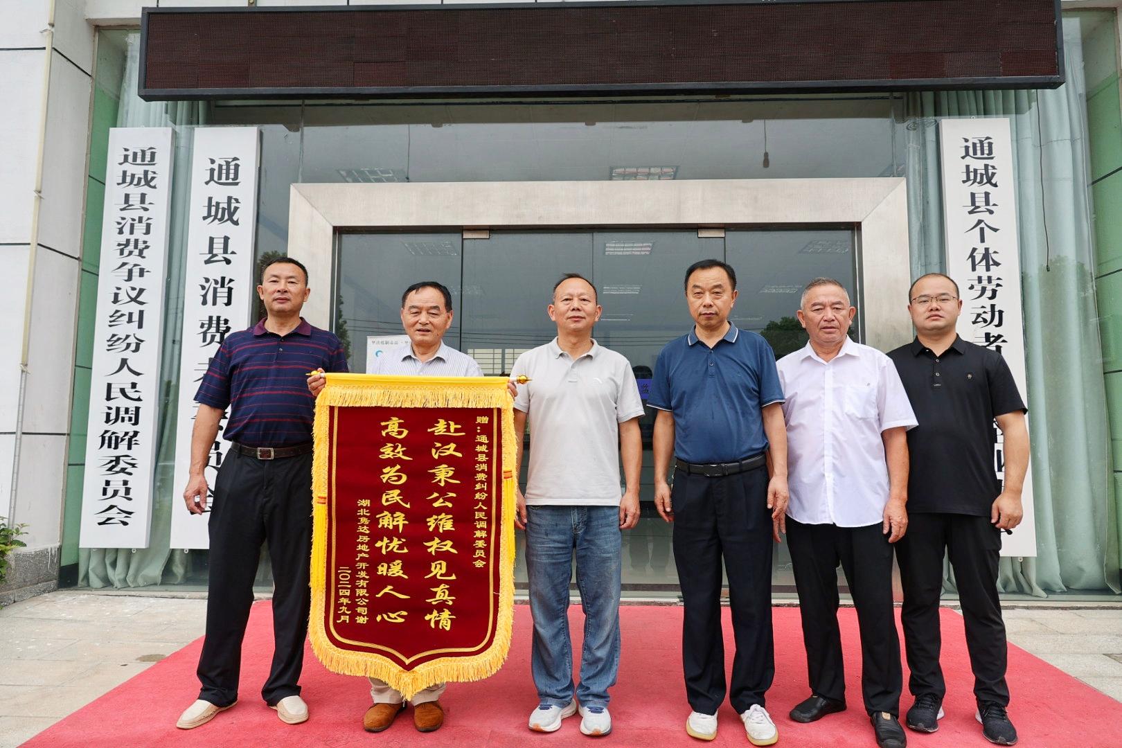 【全媒体记者 李索 通讯员 卢峻】9月12日,湖北隽达房地产开发公司来到通城县市场监管局,将一面印有“赴汉秉公维权见真情,高效为民解忧暖人心”字样的锦旗送到该局消费纠纷人民调解委员会工作人员手中,感谢通城县市场监管部门高效贴心的服务,为企业挽回了较大经济损失。