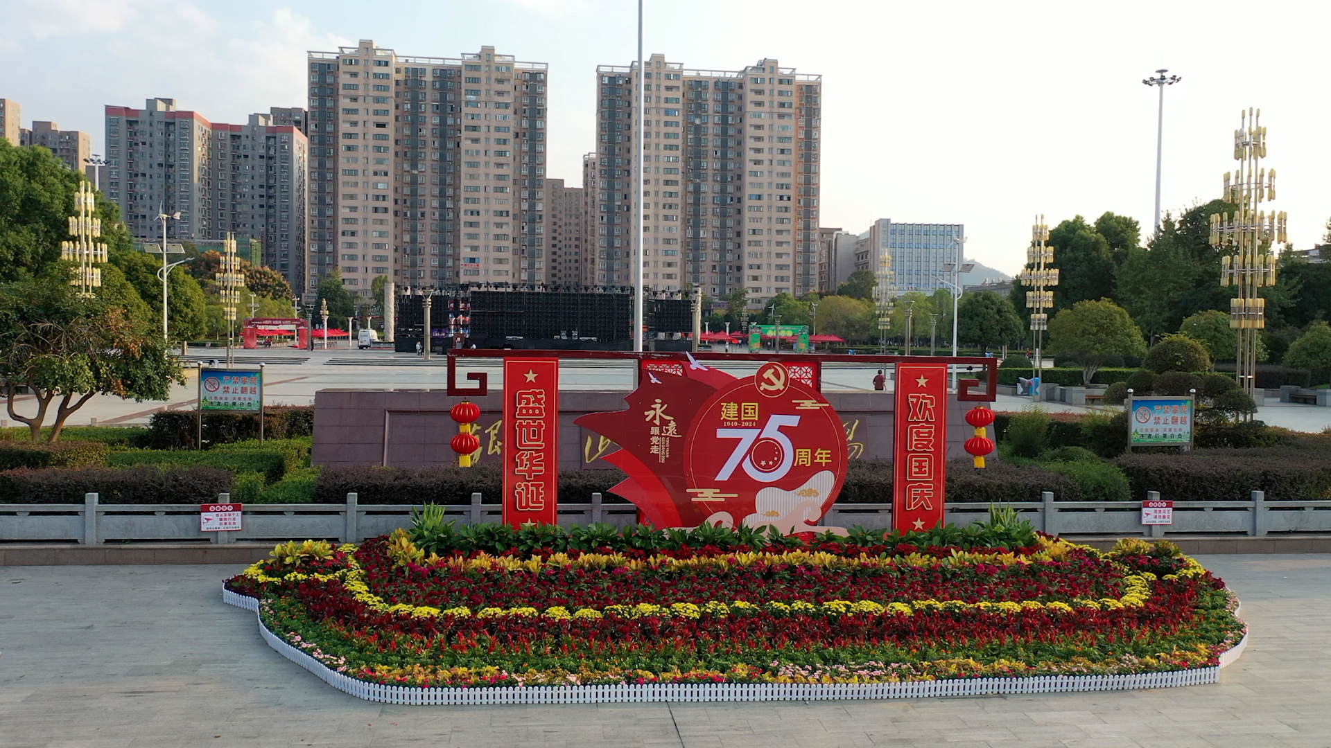 县城管执法局按照全县统一部署,统筹做好2024年国庆期间国旗悬挂工作,在秀水大道,民主路、隽水大道等主干道,以及雁塔桥、秀水桥、通城大桥等桥梁处共计悬挂国旗1400多面,并按照《中华人民共和国国旗法》要求,规范升挂、使用国旗,确保国旗神圣庄严。在银山广场和雁塔广场处,摆放鲜花和绿雕,形成了一道亮丽的风景。