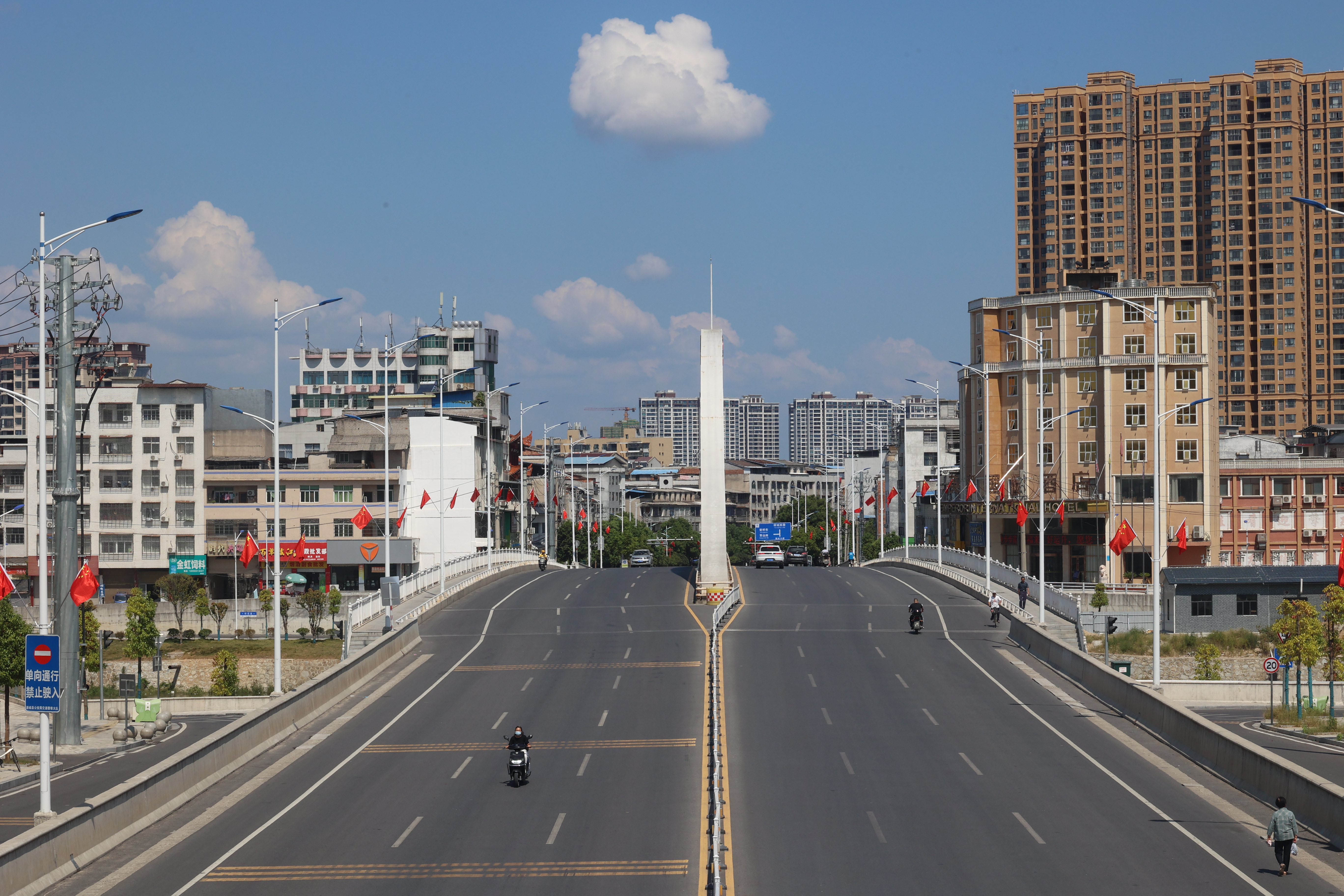【全媒体记者 陈交朋】为庆祝中华人民共和国成立75周年,营造隆重热烈的节日氛围,通城县城管执法局紧锣密鼓扮靓城市,一抹抹炽热的“中国红”飘扬空中,宛若一条条红色巨龙穿行街头,国庆氛围感拉满!