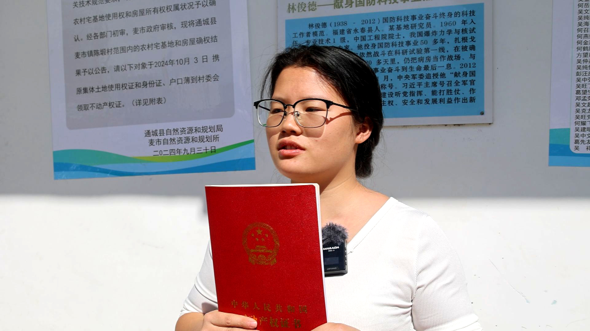 通城县麦市镇陈塅村四组村民 罗秋田:拿到证了很开心,谢谢党和政府。