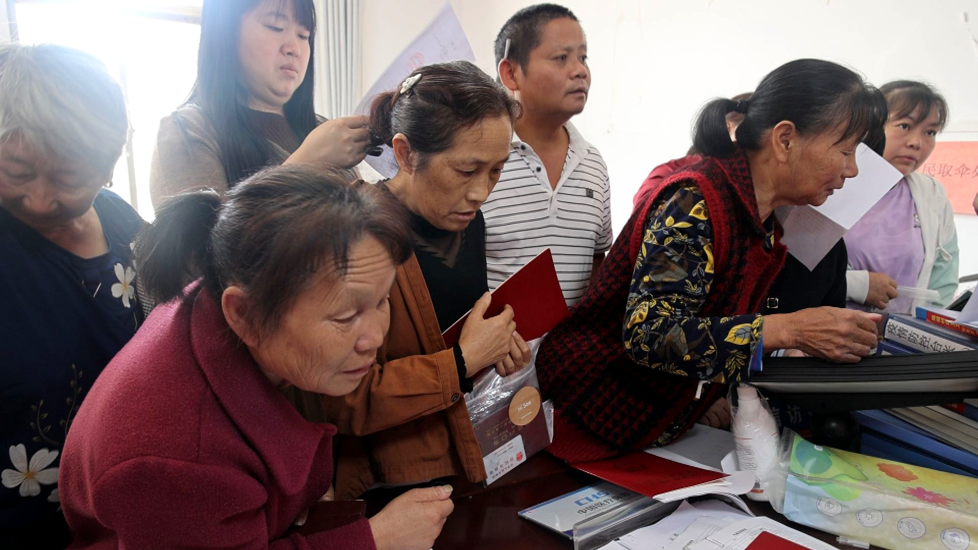 当天,县不动产登记中心的工作人员早早来到陈塅村便民服务大厅,耐心地指导村民填写领证申请和信息登记,逐一向他们颁发不动产权证书。对于年纪大等不便领证的村民,工作人员还主动上门,将不动产权证书送到他们手中。