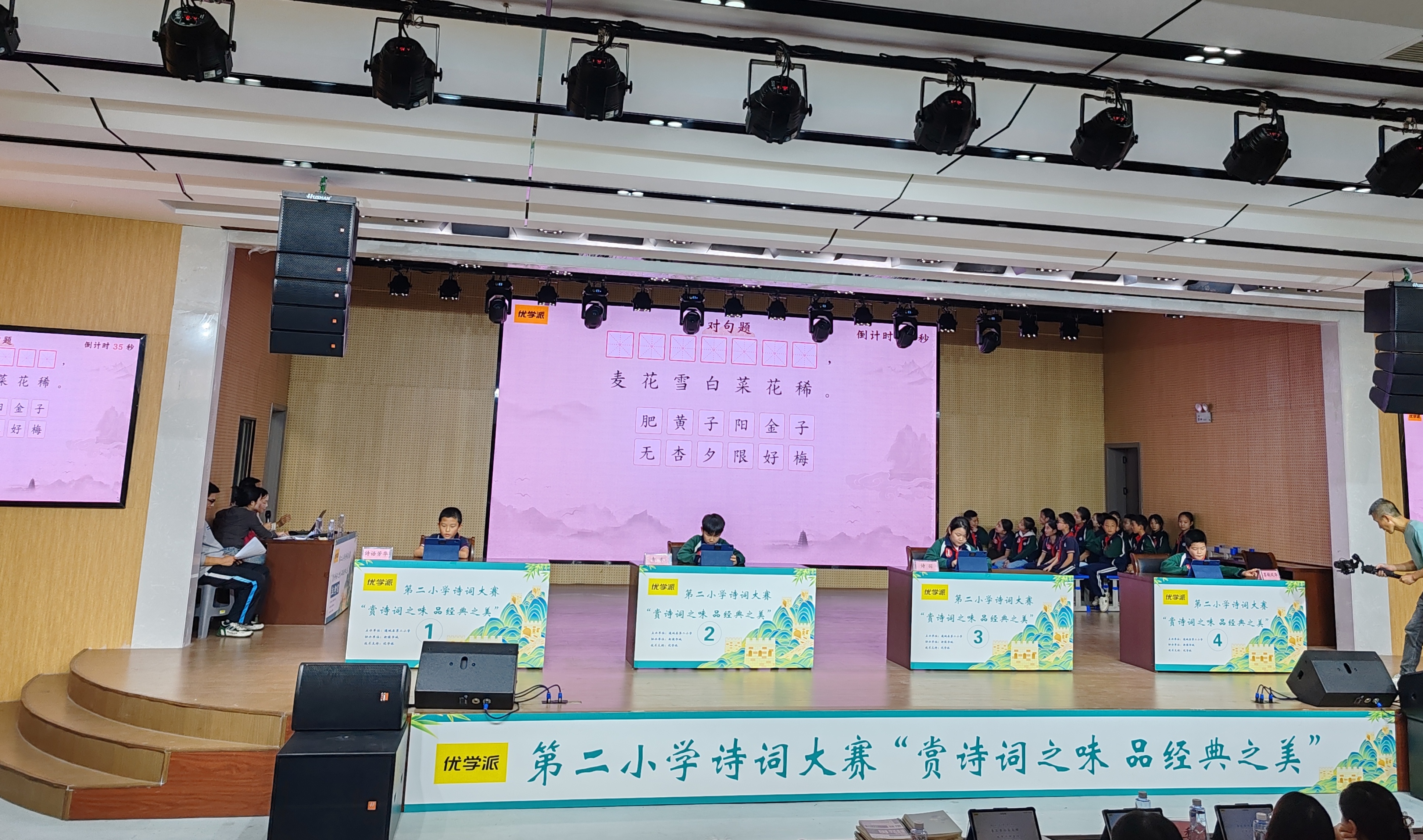 整场比赛分为必答题、选择题、抢答题和飞花令四个环节。选手们的眼疾手快与才思敏捷让现场高潮迭起,尤以“飞花令”环节最令人拍案叫绝,小选手们向观众展示了何为“行走的诗词达人”,含“山”“水”“月”的诗句在孩子们口中层出不穷。选手之间才华尽显,互不相让,博得了场下师生的阵阵掌声。