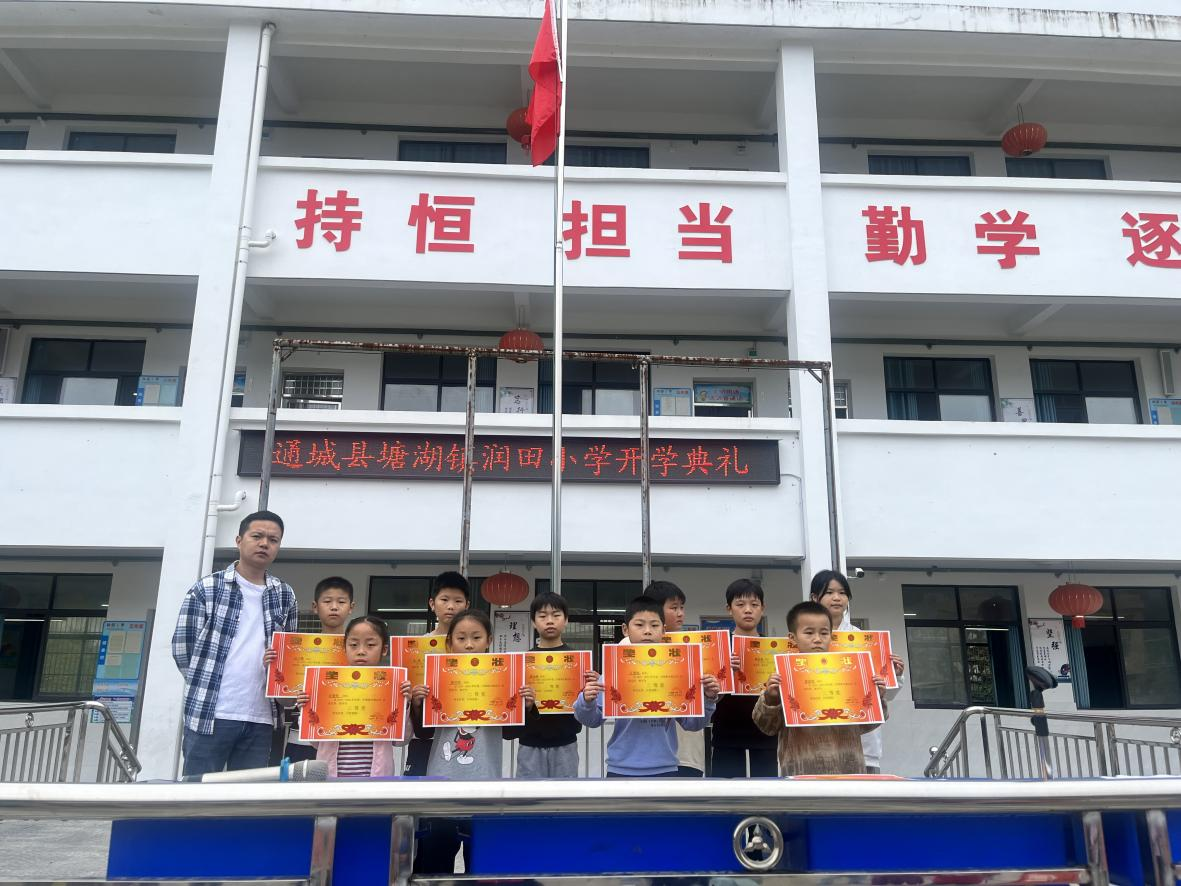 (通讯员 邓亚军)10月15日,阳光明媚,微风轻拂,通城县塘湖镇润田小学全体师生齐聚校园,举行了隆重而热烈的开学典礼。