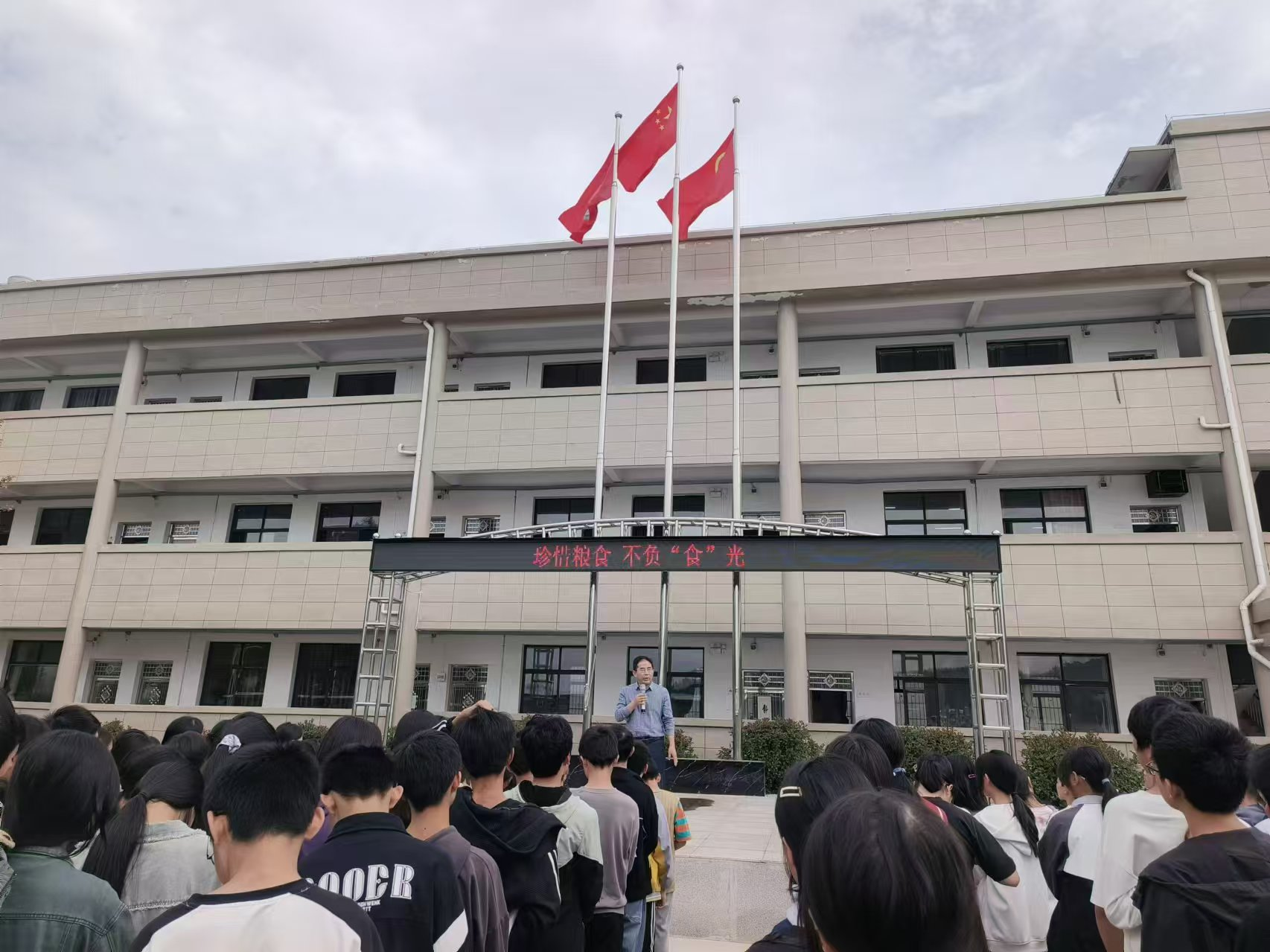 学校负责人借助国旗下讲话,介绍了世界粮食日的由来、为什么要节约粮食以及怎样去节约粮食,让同学们初步认识“节约粮食”的深刻含义,鼓励大家从珍惜一粒米,节约一滴水做起,争当抵制粮食浪费的践行者,文明健康的倡导者,并号召全体师生积极参与到节粮行动中来。