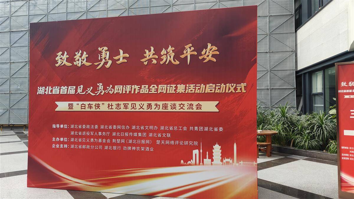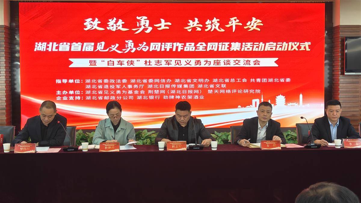 10月22日上午,湖北省见义勇为基金会联合荆楚网在武汉楚天传媒大厦召开“白车侠”杜志军见义勇为座谈交流会。