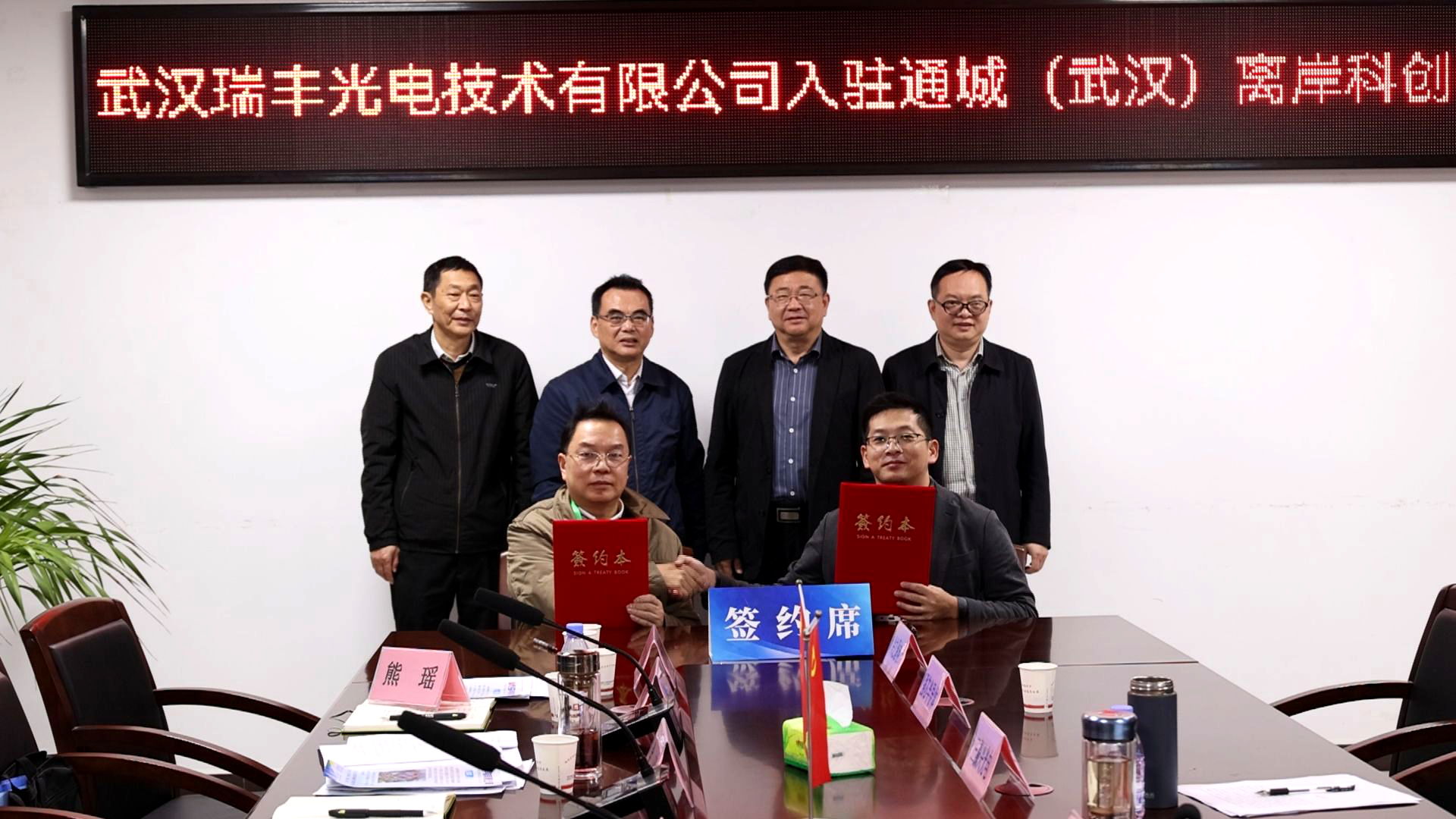 活动中,还进行了武汉瑞丰光电技术有限公司入驻通城(武汉)离岸科创中心的相关签约仪式;武汉工程大学电气信息学院副教授王振进行了发言,表示愿与通城企业合作,提供必要的人才支持。