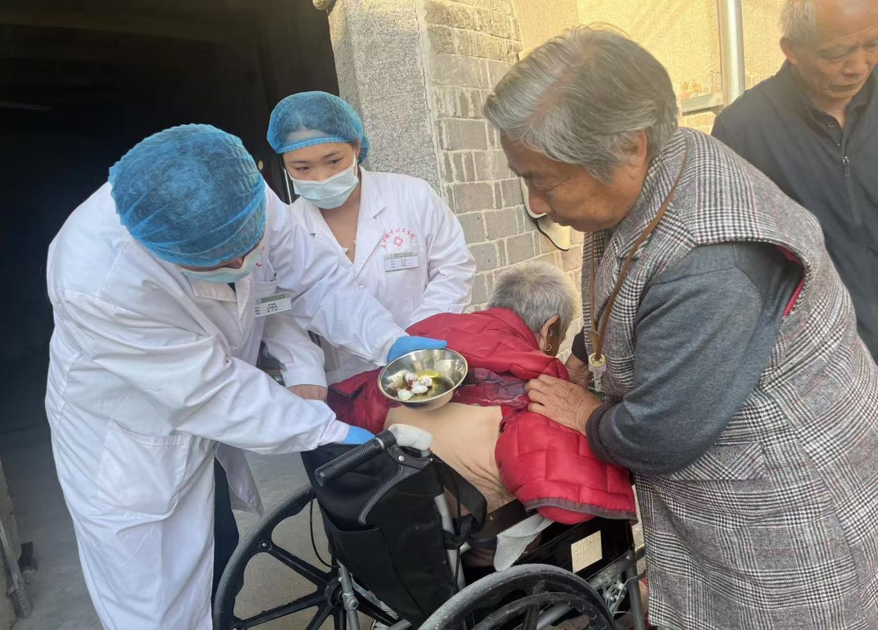 方爹爹家住在塘湖镇图垅村,距离麦市镇卫生院有8公里路程。11月10日下午,刚下夜班并坐了一上午门诊的李医师背上了诊疗箱来到方爹爹的家中,悉心地为葛婆婆进行创面的评估、消毒、换药等,并叮嘱家属在家中饮食、伤口创面的家庭护理等注意事项。