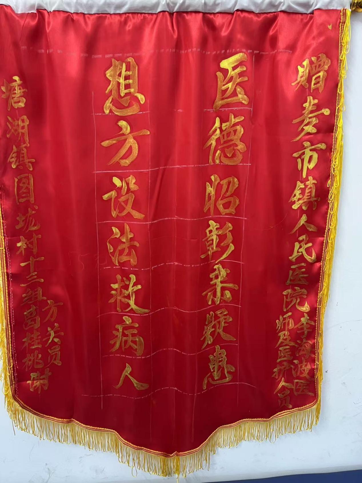 方爹爹为通城县麦市镇卫生院,为李海波医师送来了锦旗,以表谢意。