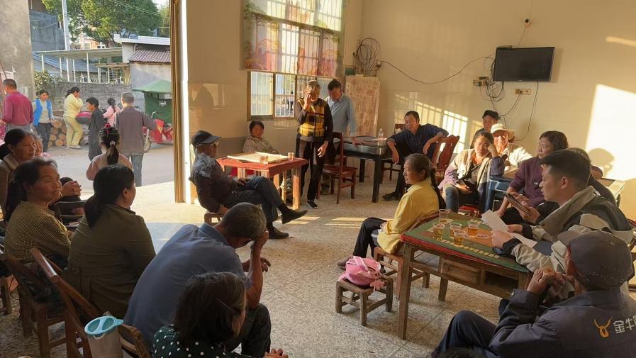 【通讯员 杨晶】11月13日,通城县沙堆镇大柱山村召开屋场会,聚焦“平安建设”“两费”缴纳以及353征地事宜,村民代表们齐聚一堂。
