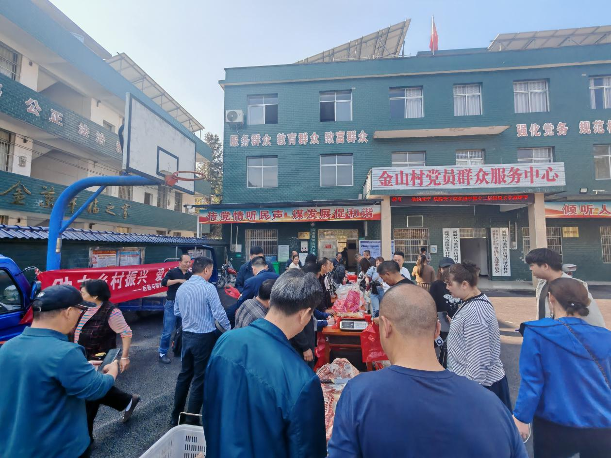 上午10点钟,在金山村党群服务中心门前场地,农户们早早摆出了“家珍”:熟食养的香猪肉、家禽蛋、红薯粉、薯粉条、干辣椒、干豆角、笋干、山茶油……热闹的乡村集市呈现在眼前,有询价的,有介绍种植过程的,还有传授烹饪方法的。场面热闹非常,党员们热情高涨,纷纷选购所需的农产品,用实际行动帮助农户解决农产品销售问题,现场共计消费帮扶金额5736.6元。