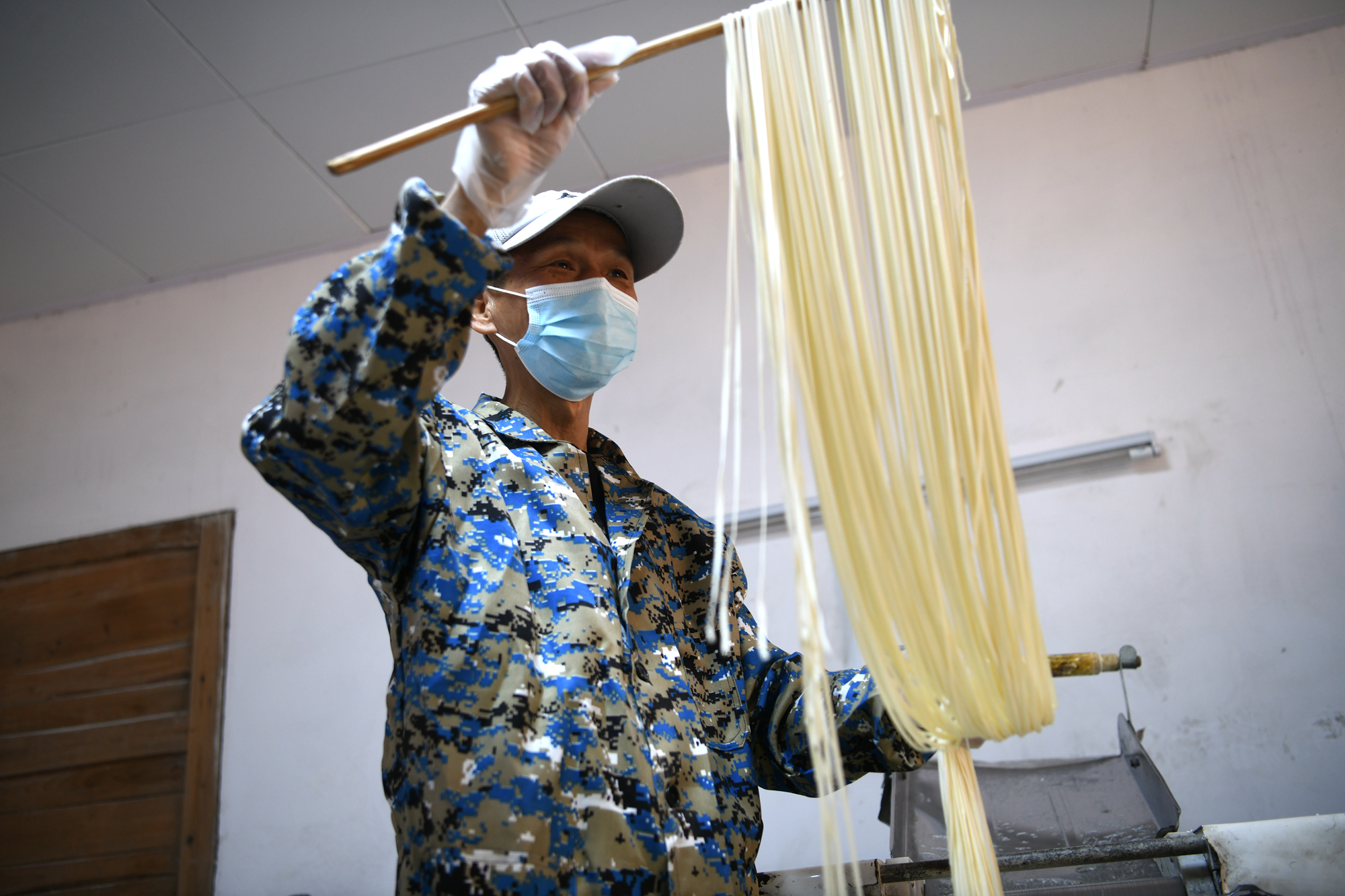 今年58岁的脱贫户胡国平,以前靠开面条作坊生活。前年,镇里帮助申请贷款将作坊升级为加工厂,日产量从300多斤提高到1000斤,还安排村里4名脱贫户在面粉加工厂广就业。