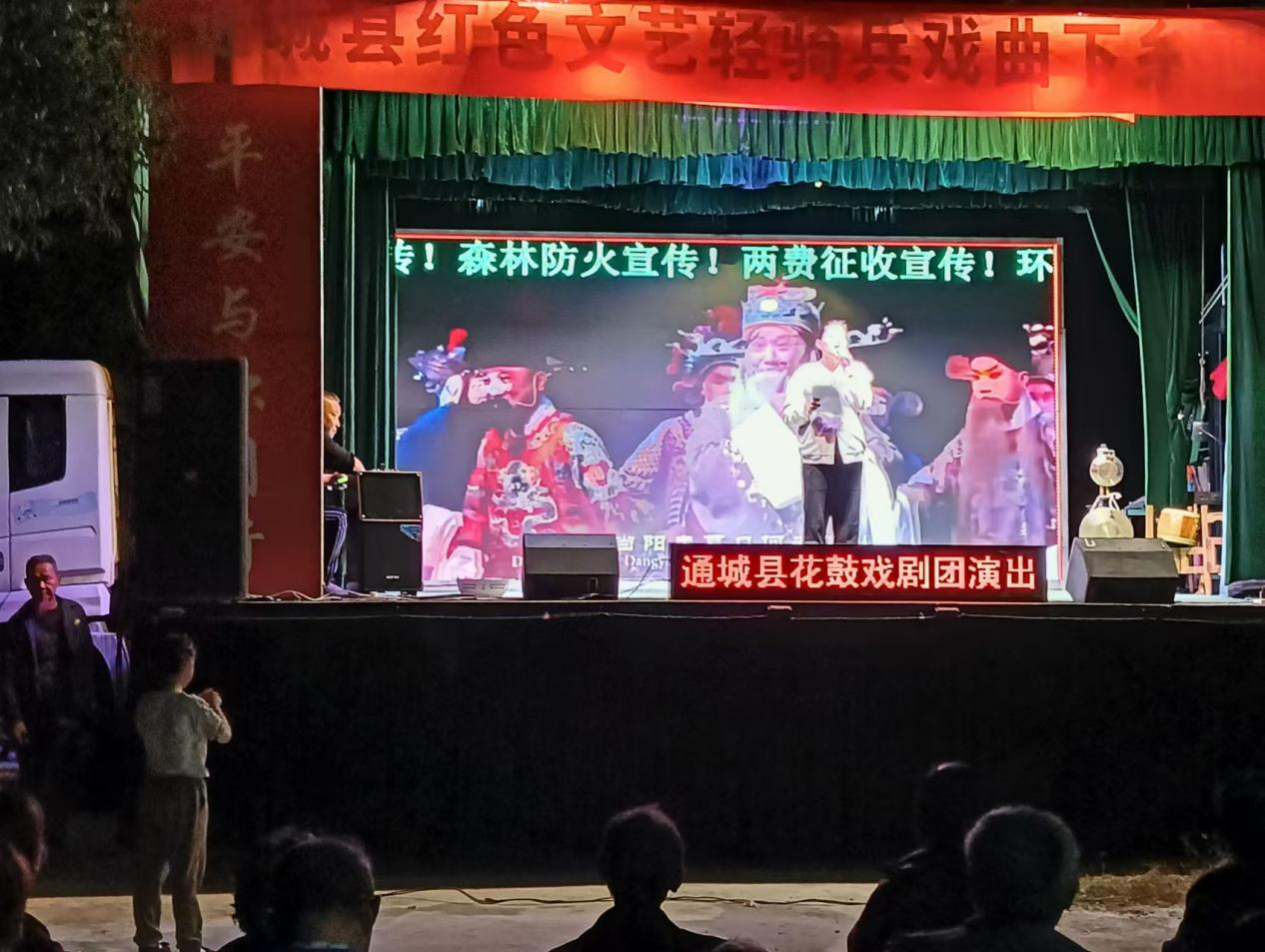 (柏树村驻村包保干部在唱戏现场上台讲解消防安全知识)