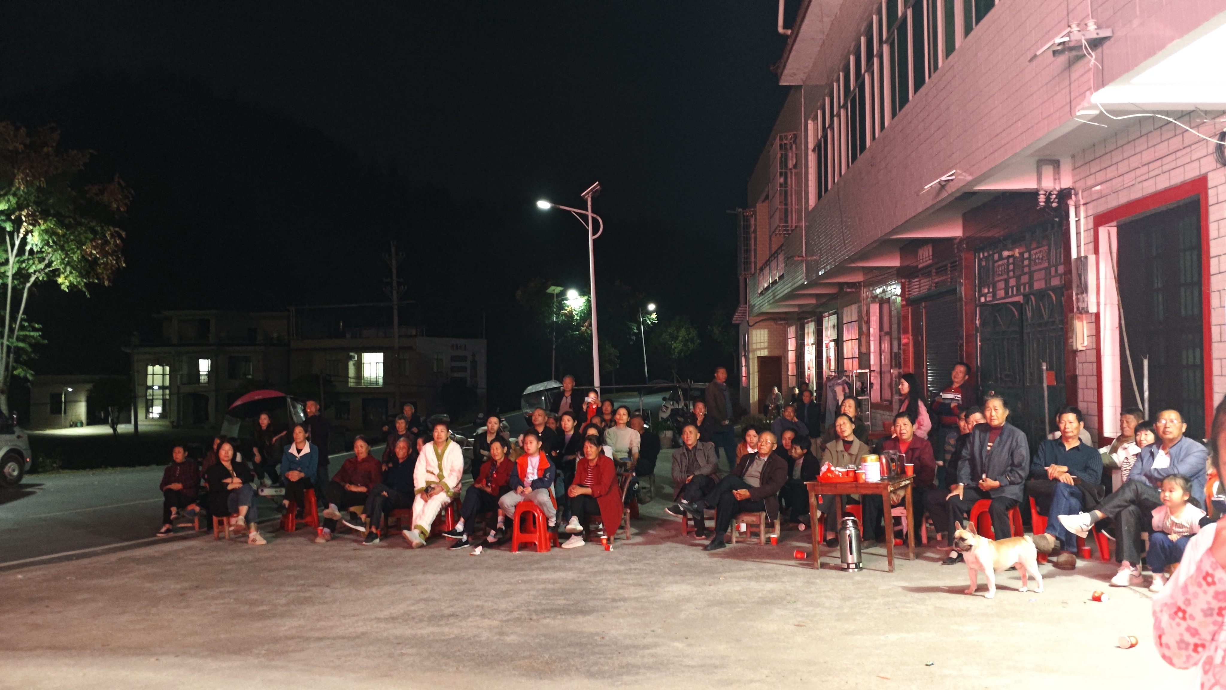 观众从尖山村各组闻讯而来,或步行到现场、或开小电驴前往,路上他们兴高采烈、逢人便吆喝道:“走,看戏去”。与舞台上精美的戏服、粉黛妆容以及细腻唱腔、精湛技艺相呼应的是观众席中响起的热烈掌声和欢乐笑声。