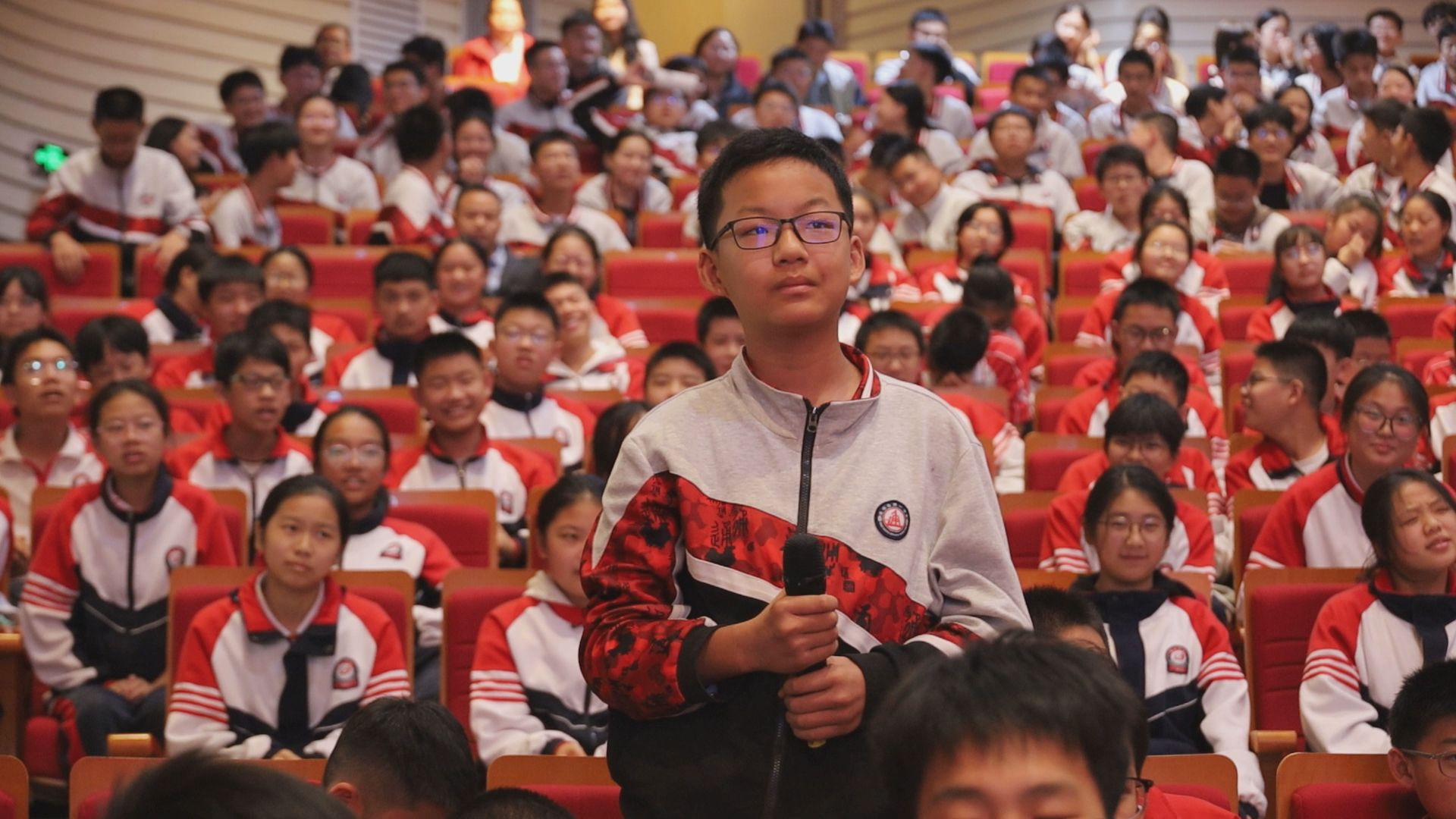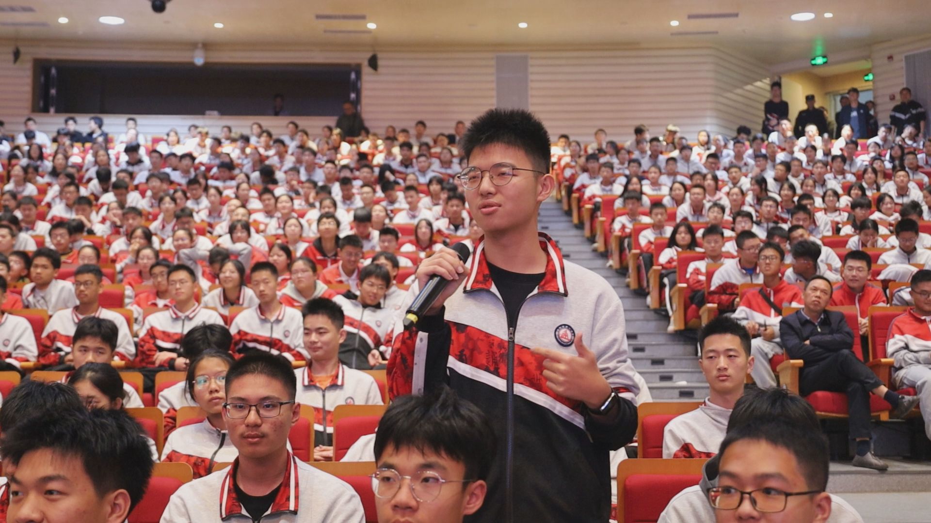 在互动环节,同学们积极提问,问题涵盖了航天技术、宇宙探索的未来发展等多个方面,宣讲人员耐心地进行解答,现场掌声热烈,气氛非常活跃。