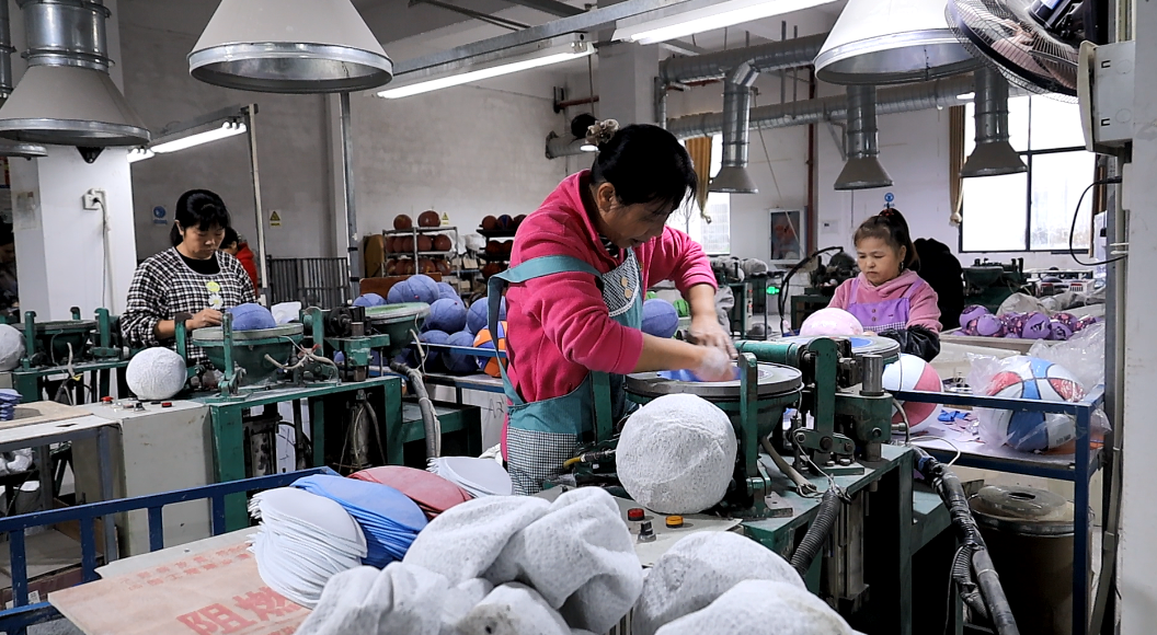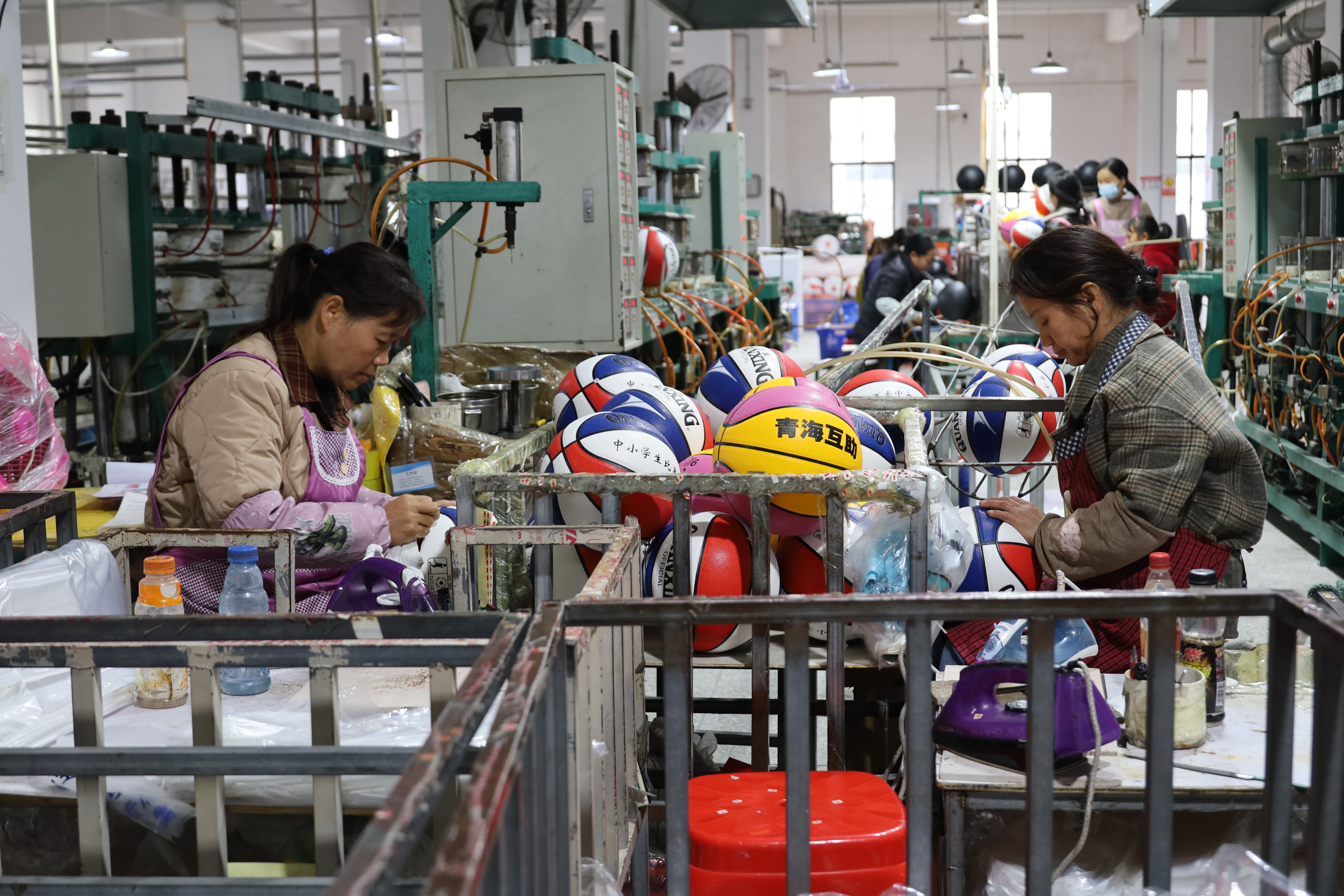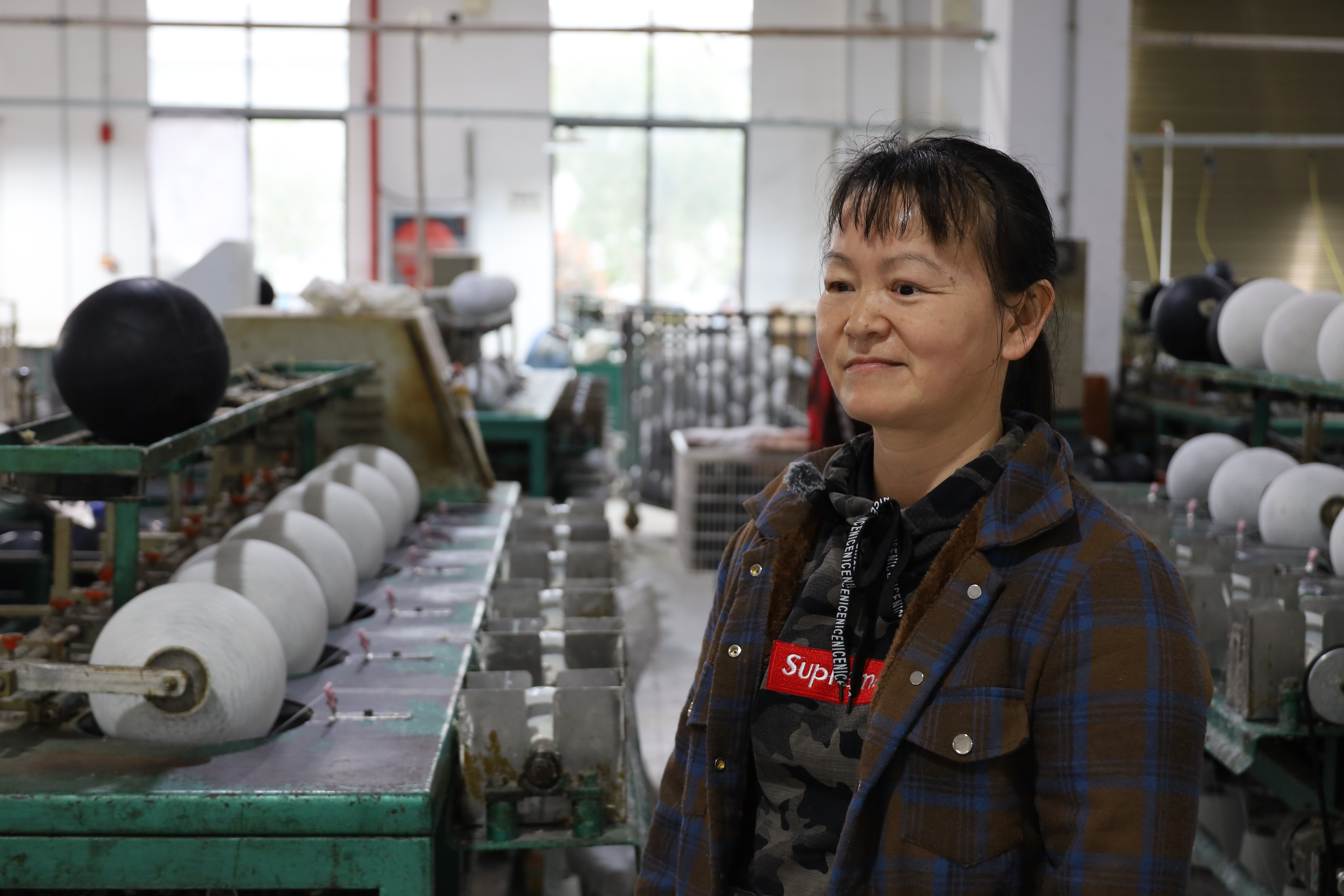 通城辉隆体育用品有限公司篮球生产线领班 雷雪花:我们二楼这边上班的人基本上都是宝妈,这里也不加班,也没有夜班,工作时间很适合我们这种需要照顾孩子的,工资也还可以。