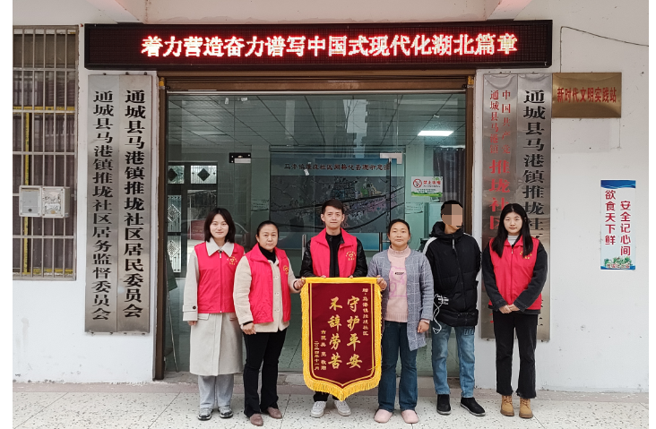 (通讯员 金灵龙 陈霖)11月19日,通城县马港镇推垅社区迎来了一份温馨而特殊的礼物。社区居民吴先生,将一面绣有“守护平安 不辞劳苦”的锦旗送到社区党群服务中心,感谢推垅社区工作人员帮助自家孩子平安回家。
