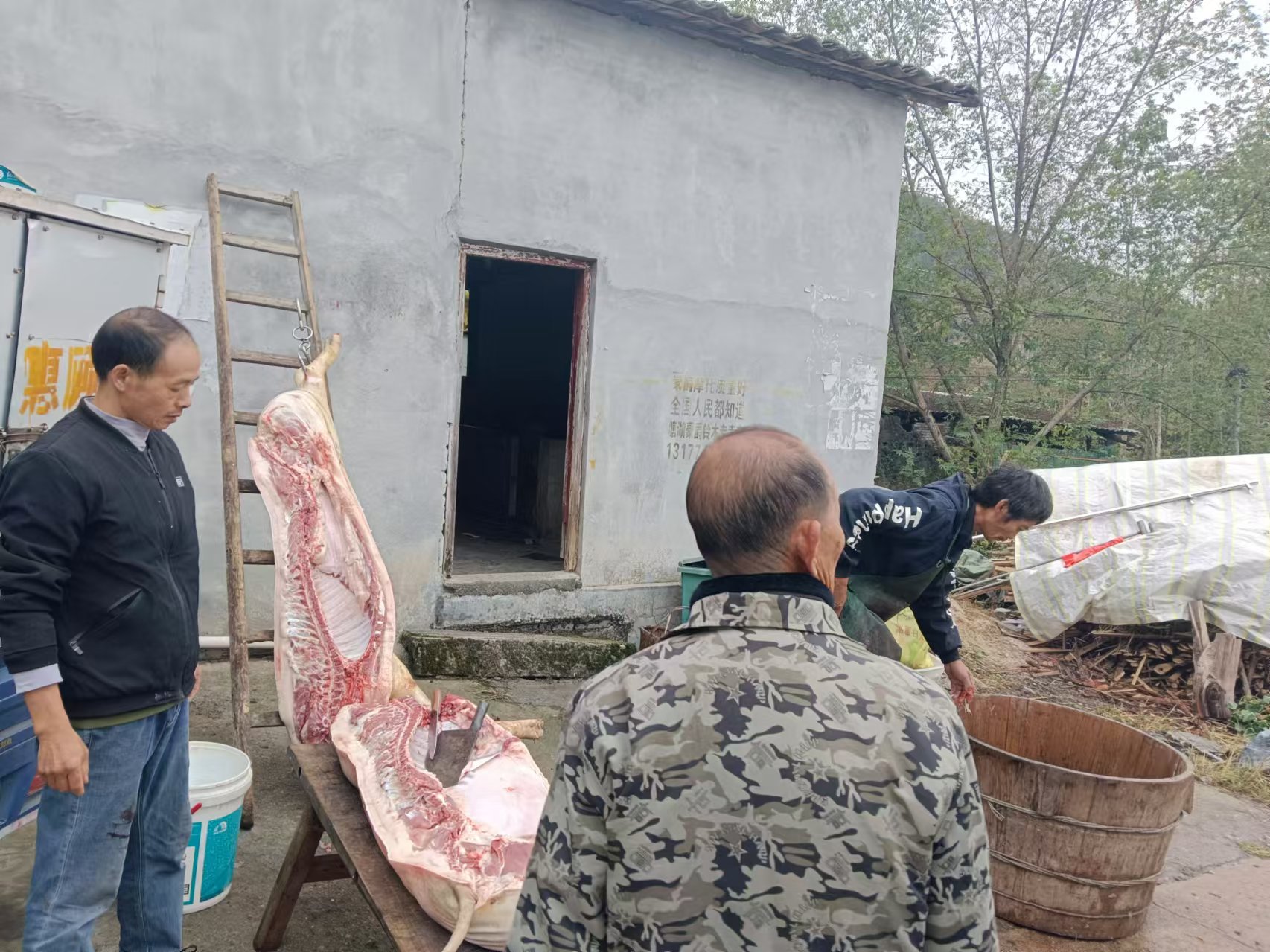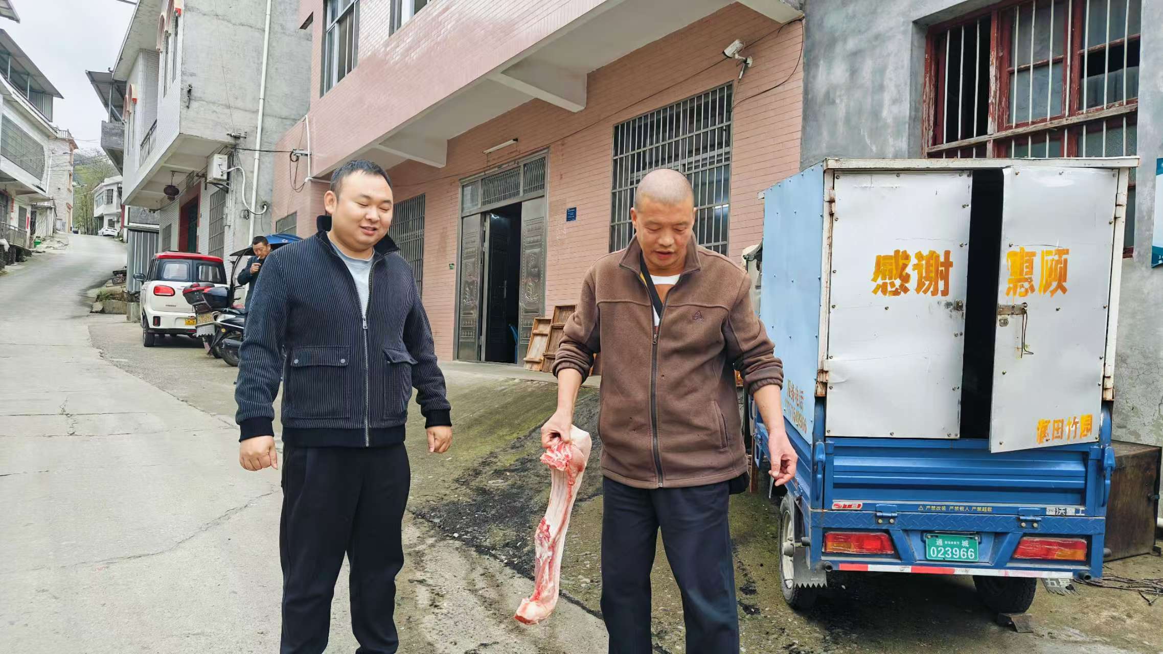 在这个过程中,县司法局驻润田村工作队队员罗斌伟的举动格外令人感动。他在得知消息后,骑着摩托车挨家挨户询问村民有没有购买猪肉的需求。