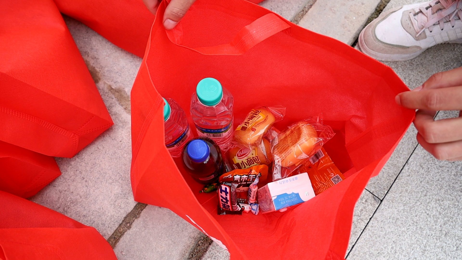 物资包是参赛者和志愿者在大赛过程中必不可少的装备,里面装有面包、矿泉水等食物。为了确保每一位参赛者和志愿者都能顺利领取到物资包,志愿者们早早地来到分装现场,根据分工,有条不紊地进行着分装工作。