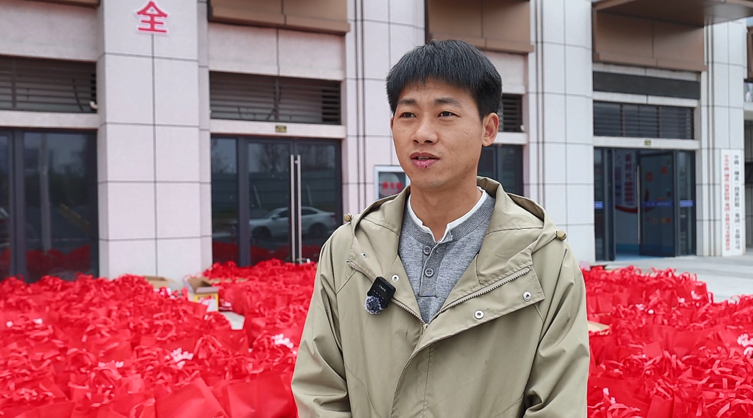 通城县志愿者 黎志敏:自行车比赛马上就开始了,今天我作为志愿者参与选手和参与活动志愿者的物资准备工作。我很荣幸有这个机会能为赛事的准备出力。活动的物资大概准备了3000余份。每一份物资里面共有8大类,涵盖了矿泉水、饮料以及代表我们通城特色的麦市干子;其次就是能够充饥的小面包、火腿肠,物资种类比较丰富。最后,祝愿活动成功举办,也祝愿所有选手都能取得好成绩。