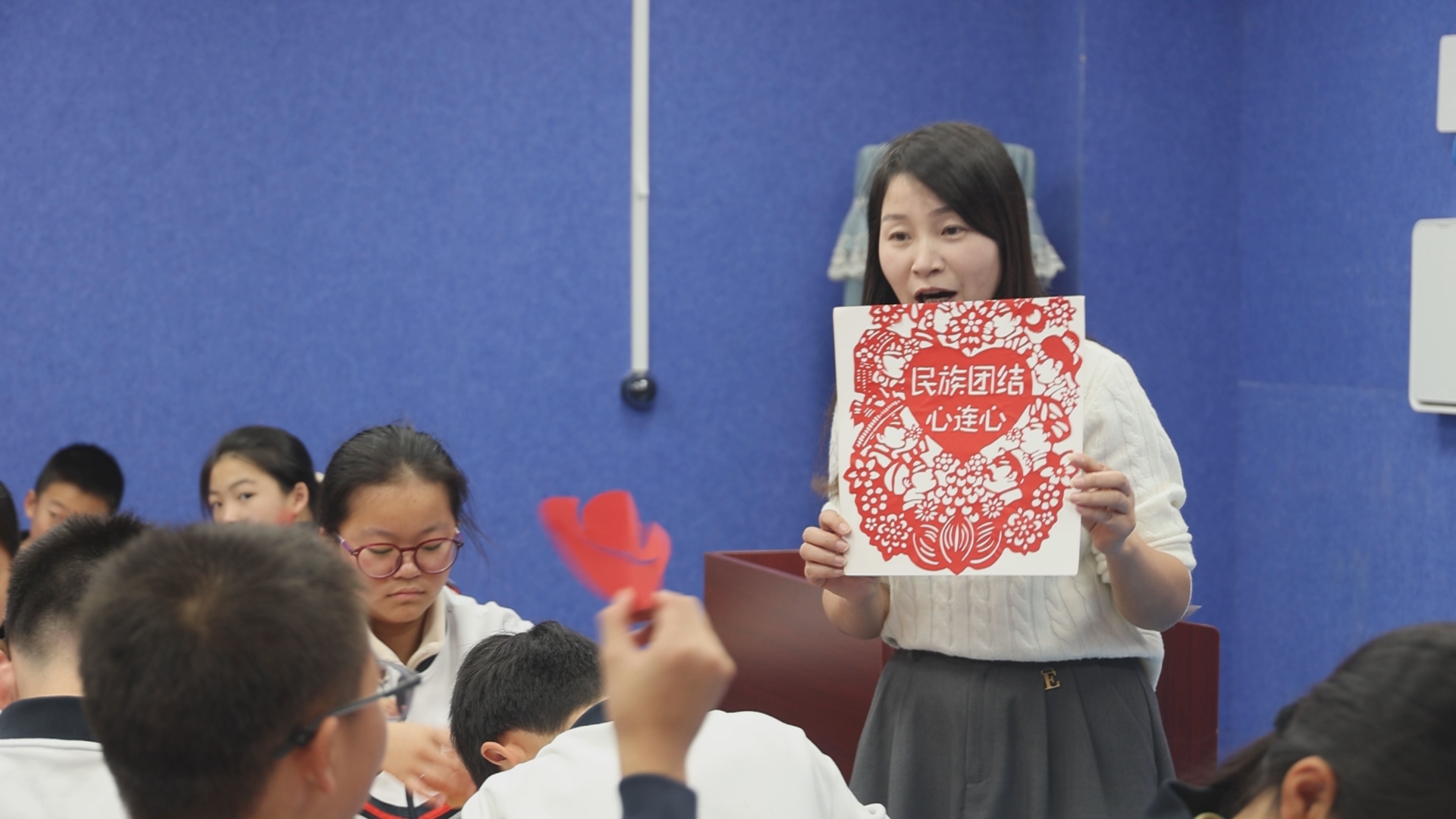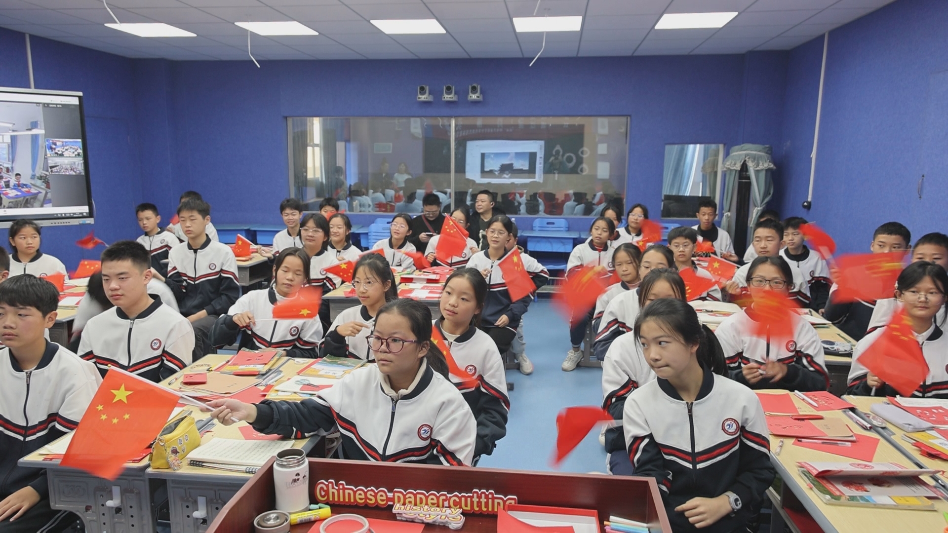在教学环节,老师用流利的英语介绍了中国的传统剪纸及其文化,剪纸的来历、剪纸的南北差异、剪纸的制作方法等,让学生们对中国这一重要的传统文化有了更深入地了解。县实验学校学生将自己制作的剪纸作品向哈日布呼中学学生展示,并就作品相关含义用英语对他们送去问候与祝福。临近尾声,县实验学校的学生们伴随着歌曲的节奏,挥舞着手中的五星红旗,展示出两地师生之间的浓厚友谊。