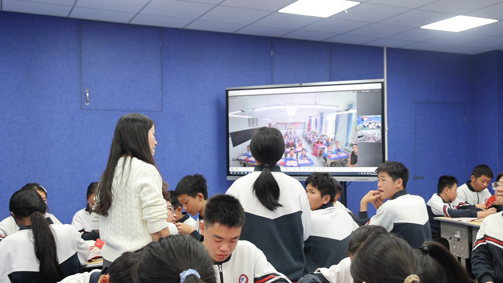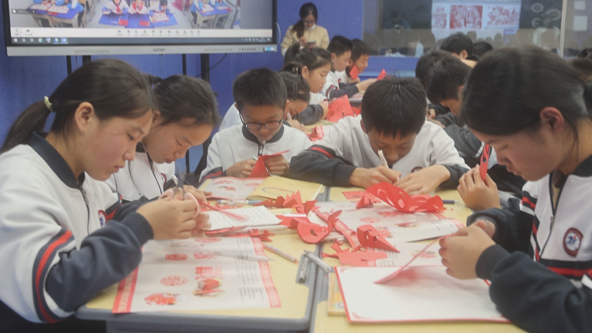 本次云上互动教学活动是初中英语课程,以《中国传统文化之剪纸》为课程主题。课堂上,鄂疆两地师生通过电子屏幕用英语互相问好,老师鼓励引导两地学生参与英语互动交流。