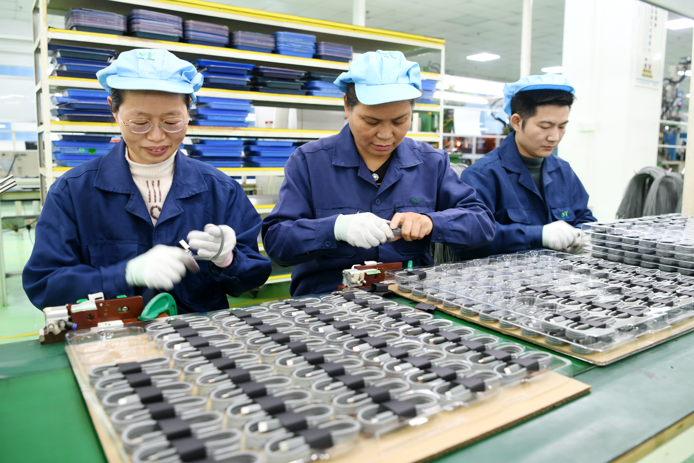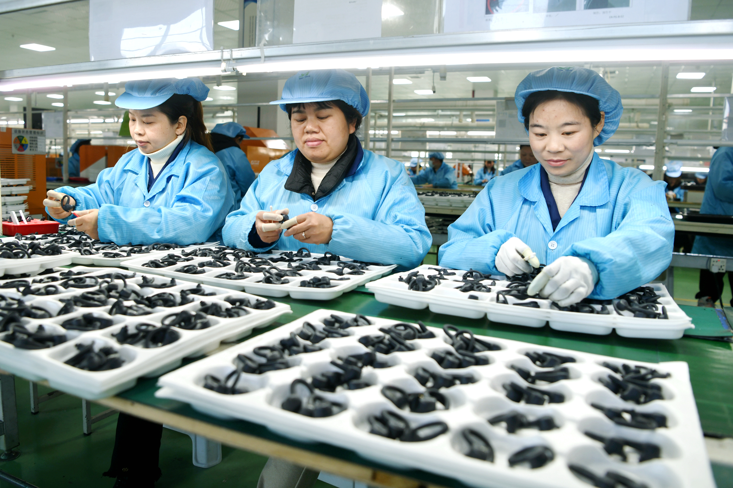 【通讯员 刘建平】2024年12月19日,在湖北省咸宁市通城县经济开发区瀛新精密电子有限公司成品耳机车间,工人忙着赶制出口订单。