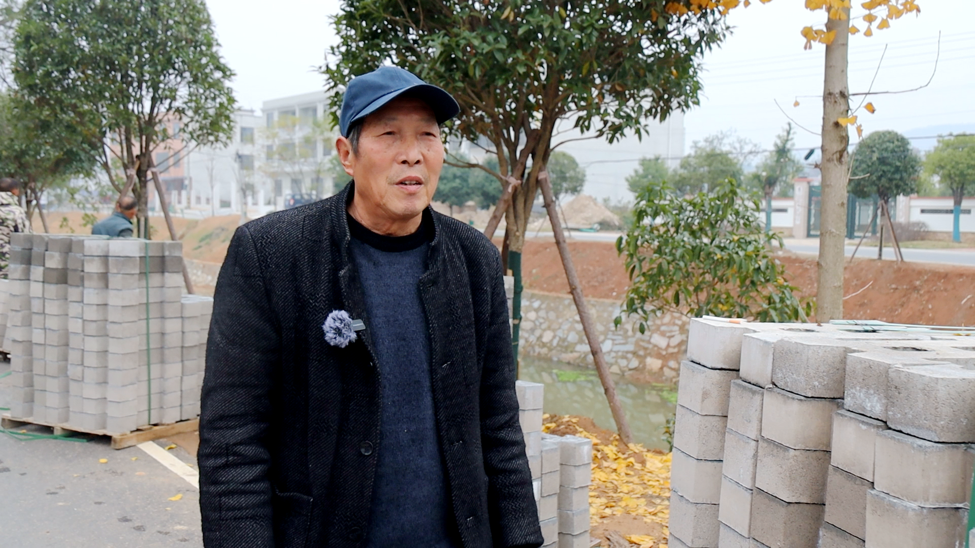沉山村脱贫户 胡名:我们沉山村的老百姓都有参与做事,我平时管理材料、记工,也帮忙做点事,收入六千多块钱吧,感谢党。