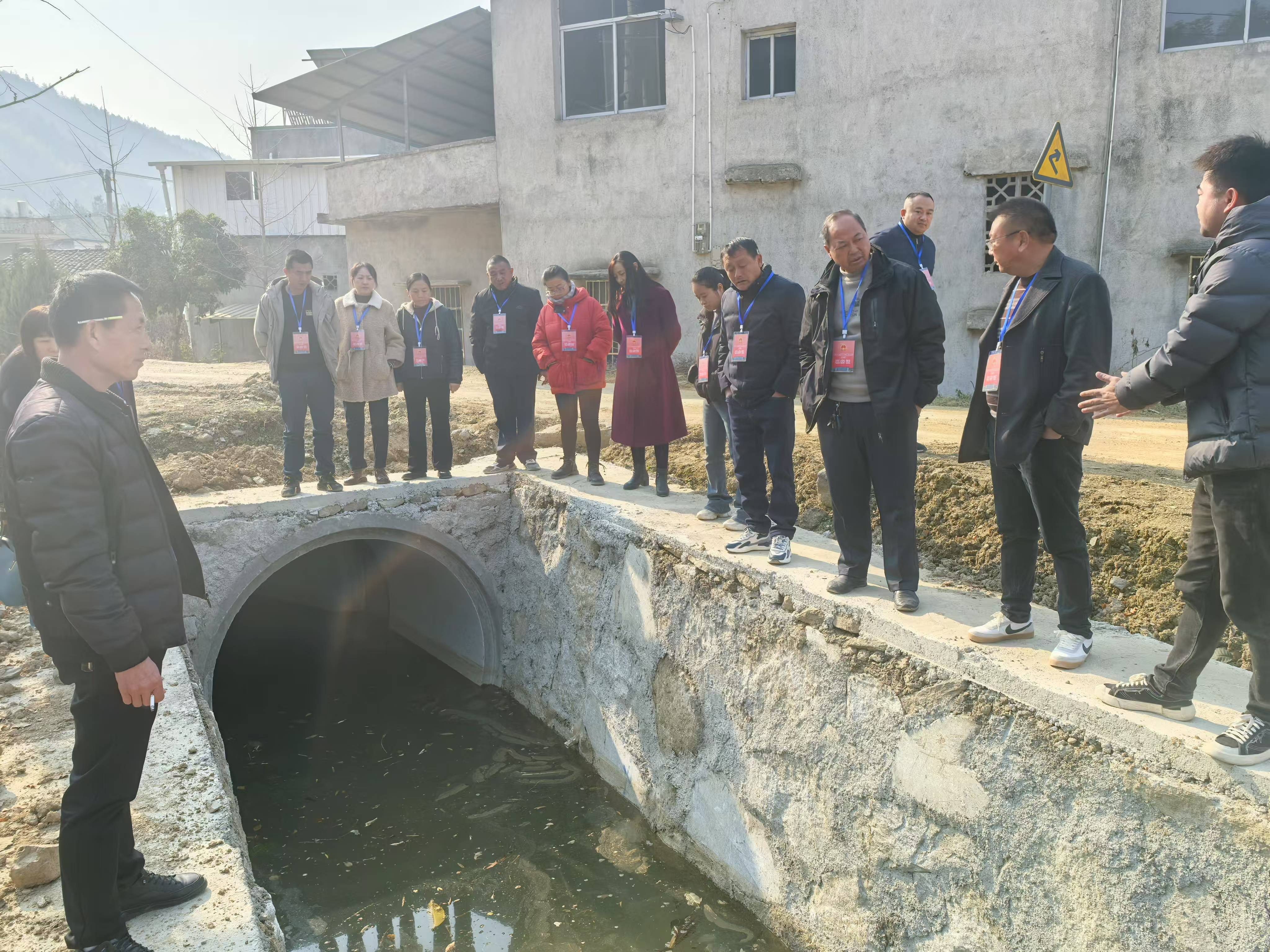 在华家村印墩上,查看小流域综合治理和共同缔造建设节点,了解群众集资和投工投劳等参与情况。