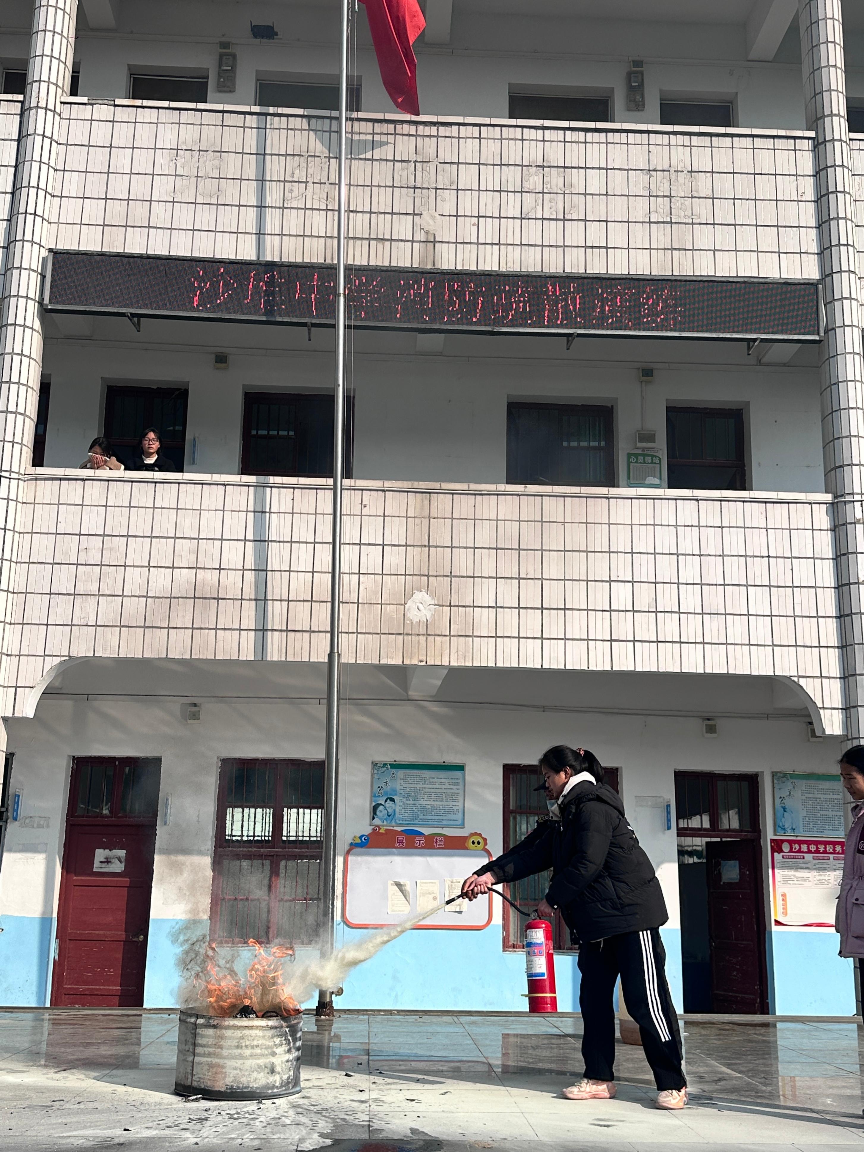 全体师生现场观摩了整个灭火过程,掌握了正确的灭火方法,并随机抽取师生代表在工作人员的指导下进行模拟灭火体验,在实践中掌握消防知识与技能。