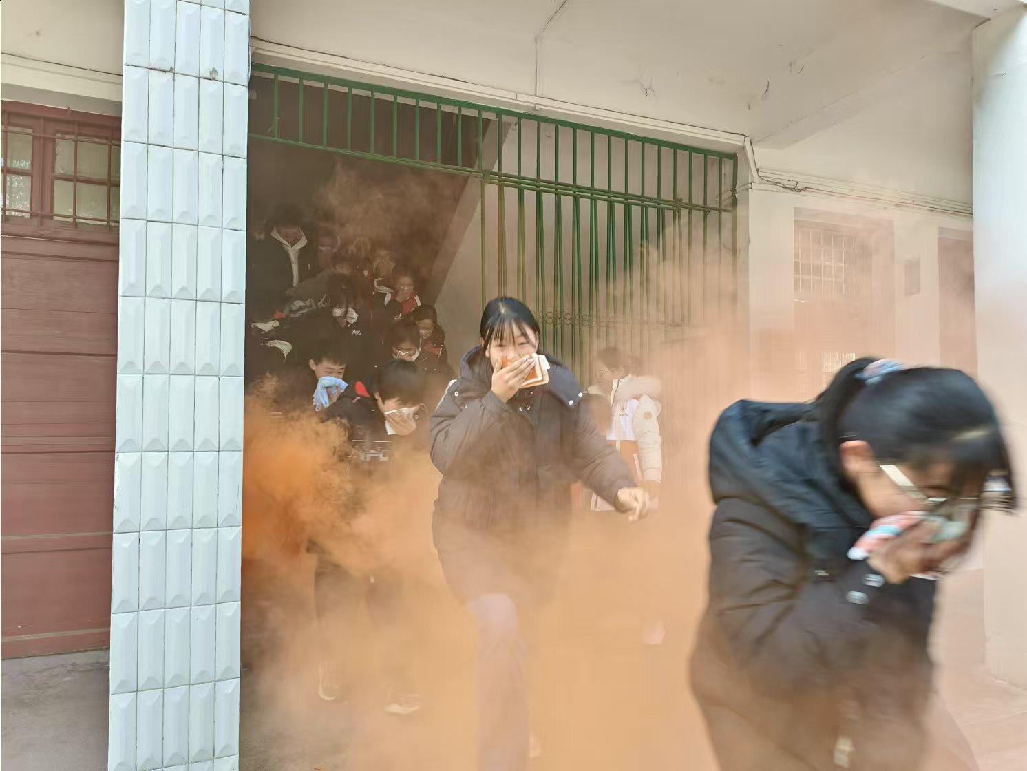 上午9时50分,随着紧急疏散警报的响起,消防演练正式开始。全体师生响应迅速,负责每层楼道口、楼梯拐角处的引导员立刻就位,各班级正在上课的老师及时反应,带领学生按照预定路线有序撤离教室,同学们严格按照平时在消防安全知识课堂上学到的技能正确逃生,湿毛巾捂住口鼻,弯腰前进,听从老师的指令有序地从教学楼疏散到学校操场。