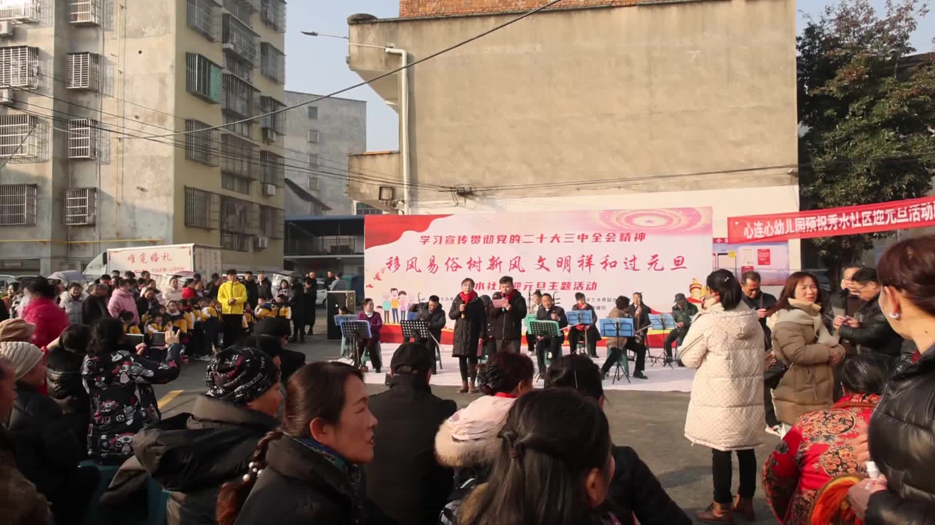 视频-通城县隽水镇秀水社区举办元旦文艺汇演活动