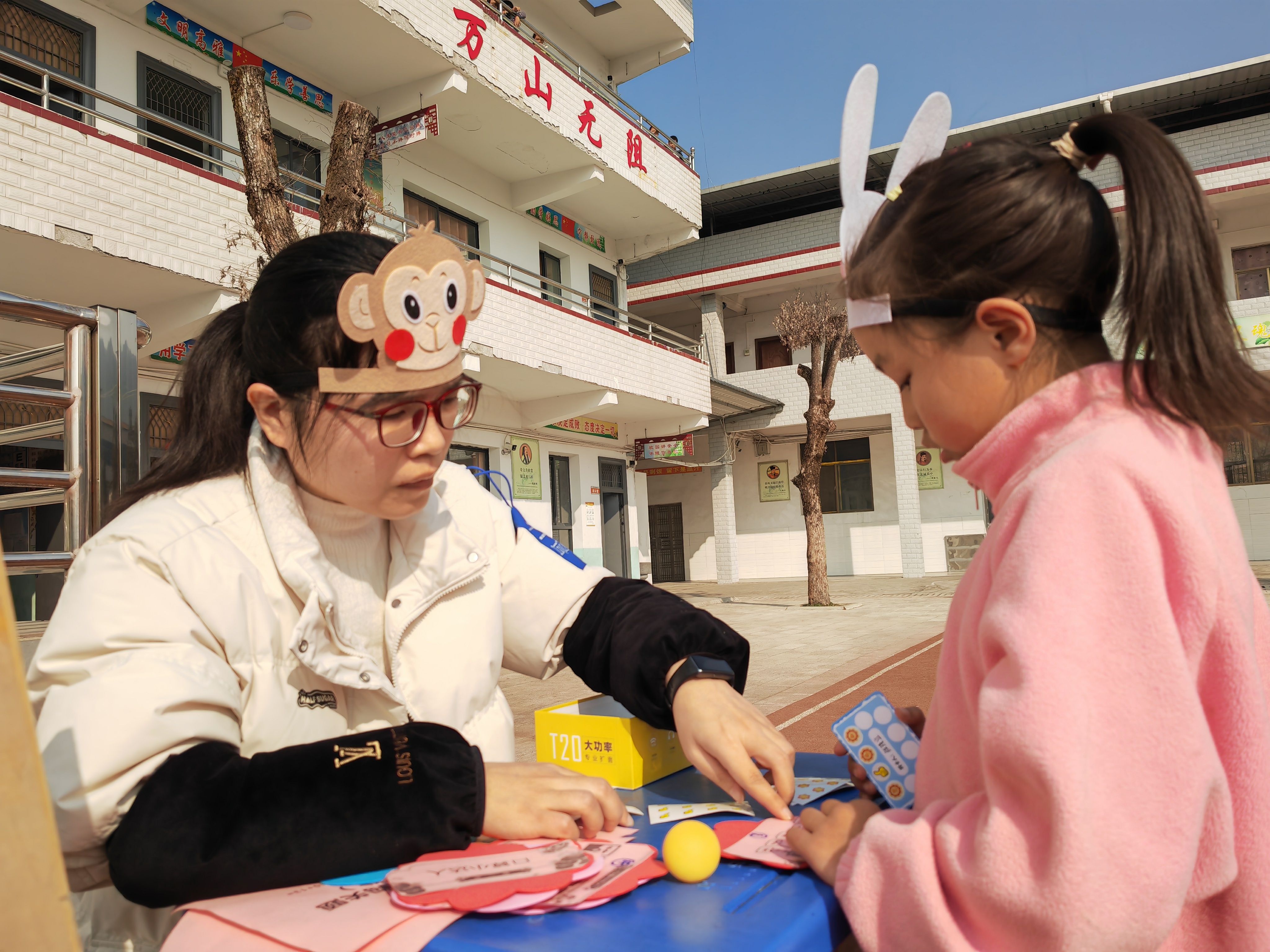 为营造欢快的测试氛围,学校精心准备了头饰、贴纸和积分卡,孩子们通过扮演角色、完成挑战来积累积分,激发了他们的学习热情。成功闯关后,孩子们还能获得小礼物,这不仅是对他们努力的认可,也是对他们学习兴趣的激励。学生小宜说:“我八关全部通关了,得到了八颗贴纸,我很棒哦!”