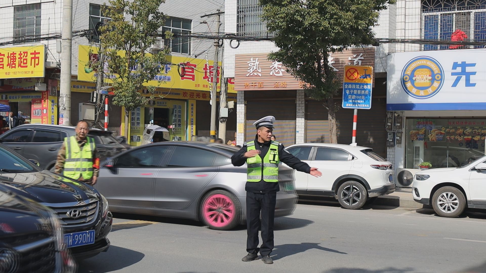 【全媒体记者 戴唯玮 通讯员 胡琪 孙争果】G353通麦公路是全县乡镇交通量最大的线路,1月27日,记者在通城县关刀镇G353通麦公路官塘集镇路段看到人车流量剧增,为确保村民拥有顺畅的春运出行环境,关刀镇组织镇村干部、派出所民辅警共50余人积极行动,精心部署,全力开展交通疏导工作,为群众欢度新春佳节筑牢交通安全防线。