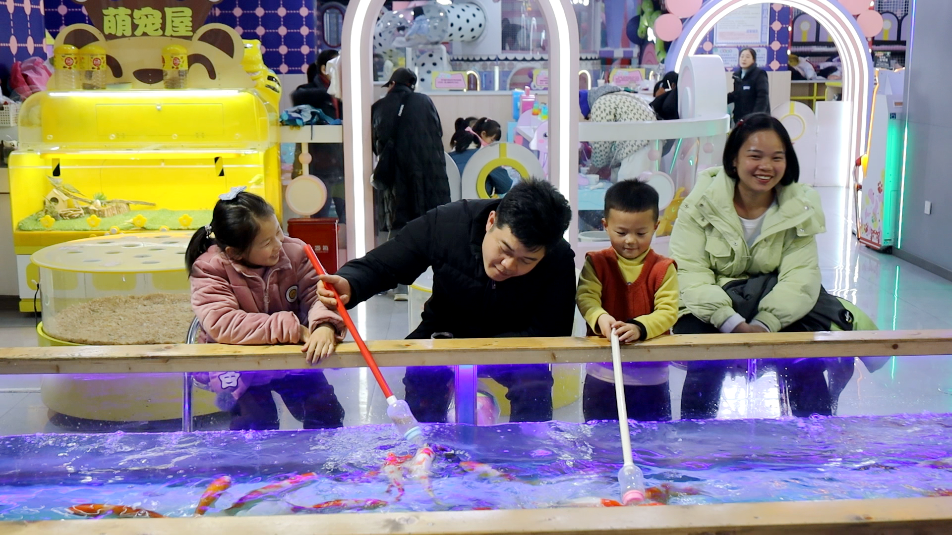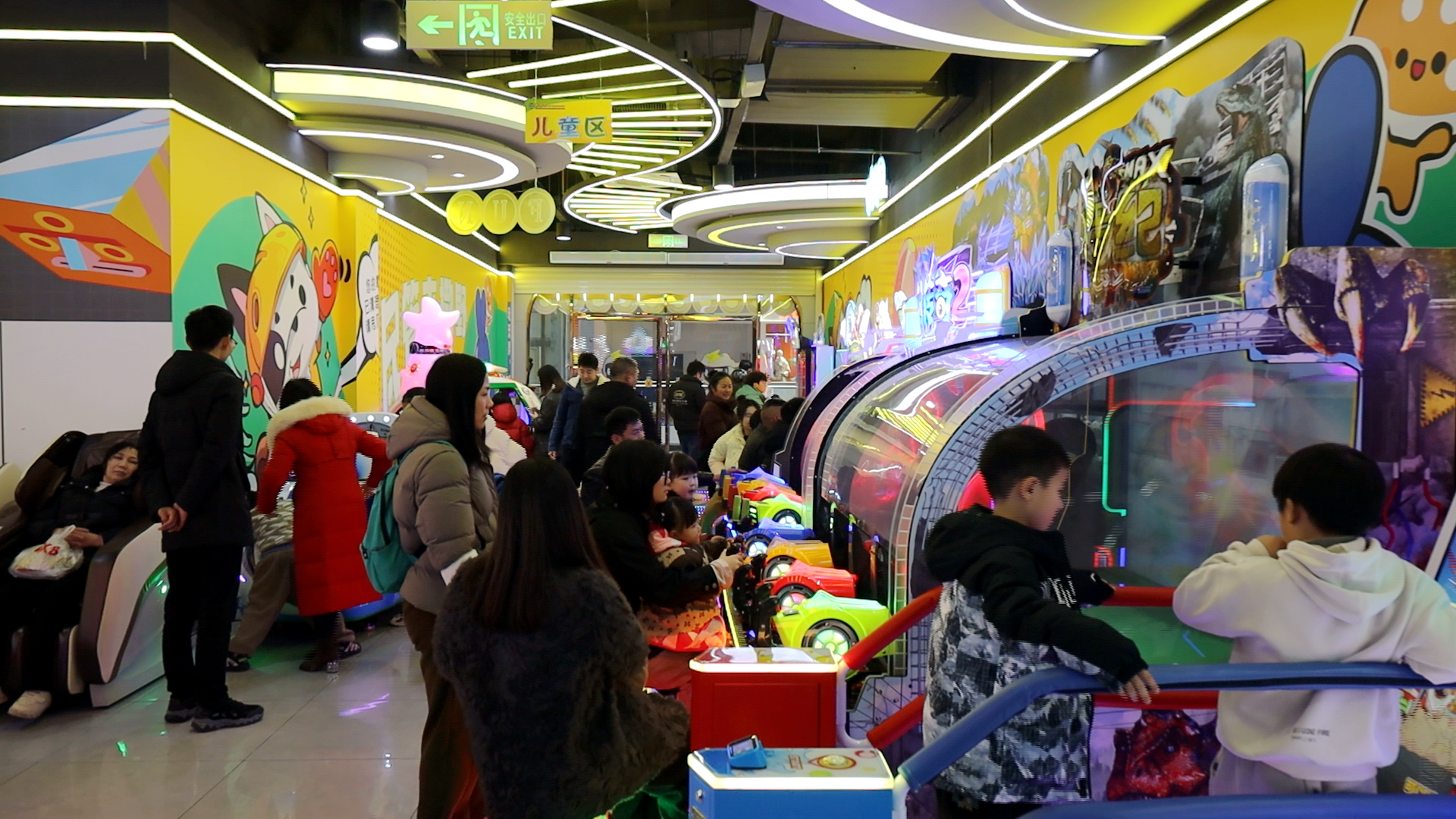 在中星天街商场的岁穗乐电玩城和欢乐星空VR+童趣乐园内,孩子们在迷你赛车模拟器、VR体感游戏中玩得不亦乐乎。家长们则在旁边观看或参与互动,电玩城内充满了欢声笑语。