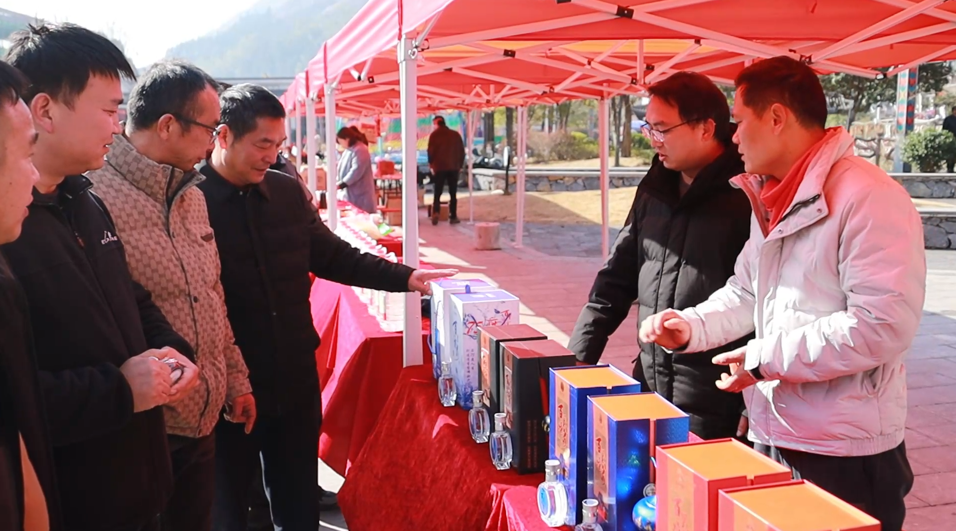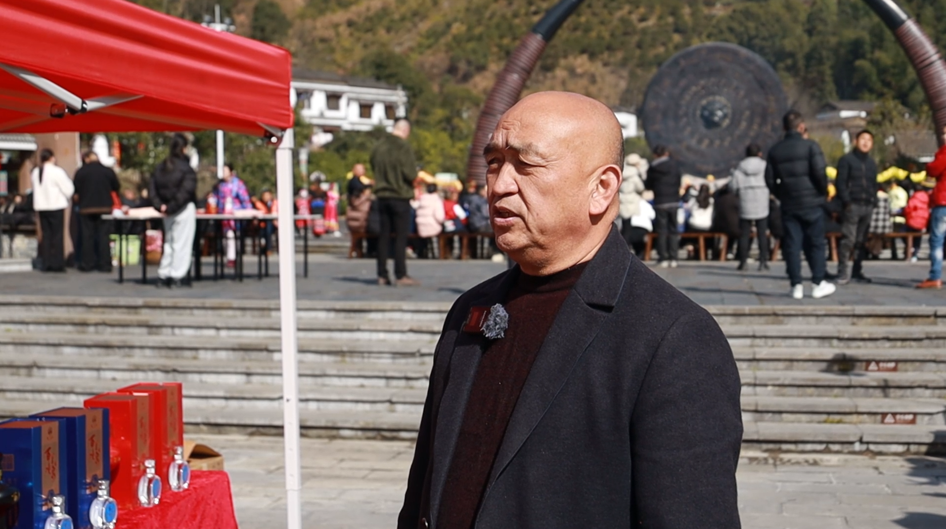 湖北百里境泉酒业公司董事长 李英成:今天来到了大坪瑶族村,欢天喜地过大年,我们今天把好酒都带来了,希望大家喝到我们北港的粮酒。