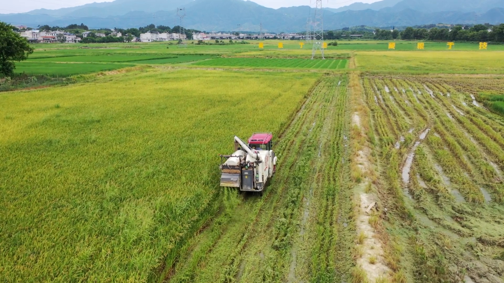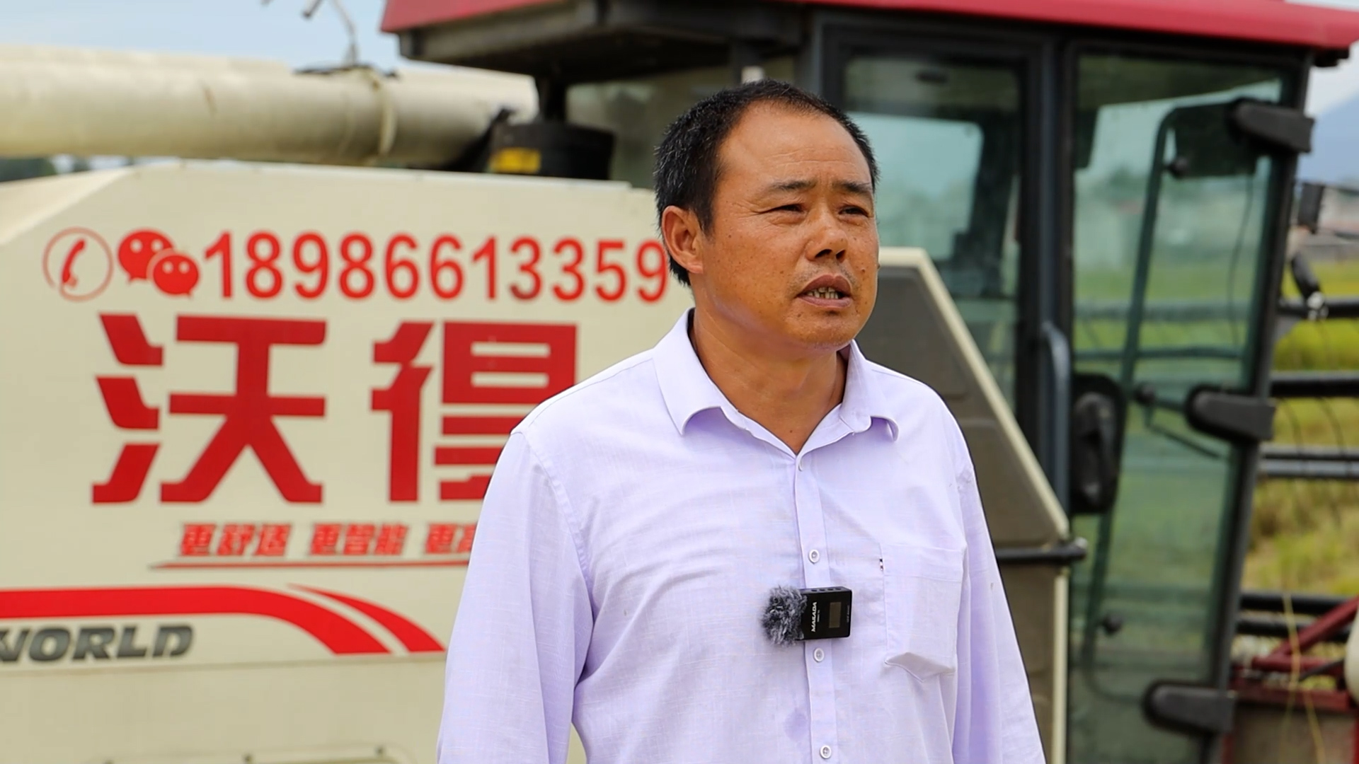 通城县机耕手 王友明:这个田每天可以收五六十亩,没有整改的时候,一天收三四十亩。慢就慢在转弯处,田太小了,这个大田好得很。