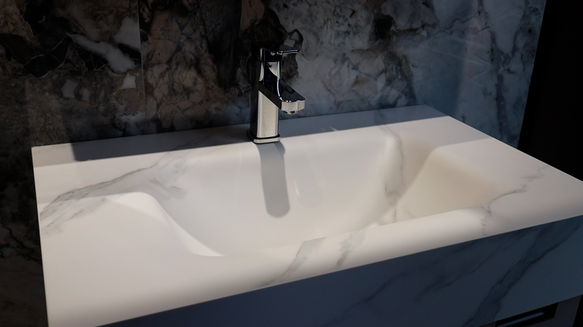 “岩板热弯一体盆”系列产品通过高温加热岩板材料,使其达到可塑性状态,然后利用模具将其弯曲成所需的形状,经过冷却定型等一系列工艺处理,形成完整的岩板热弯一体盆,确保盆体的质量与美观。