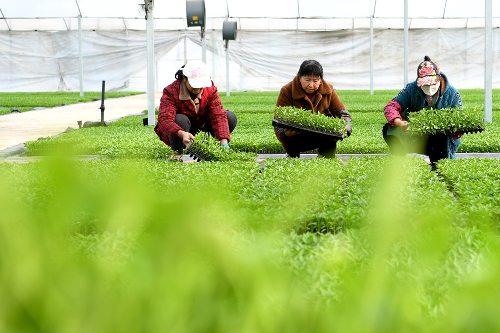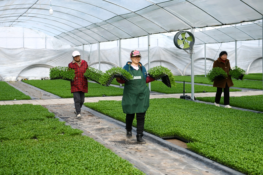 2025年2月27日,在湖北省咸宁市通城县北港镇绿康种苗基地温室大棚内,工人抢抓农时,管护新苗,为春耕春播提供优质种源。