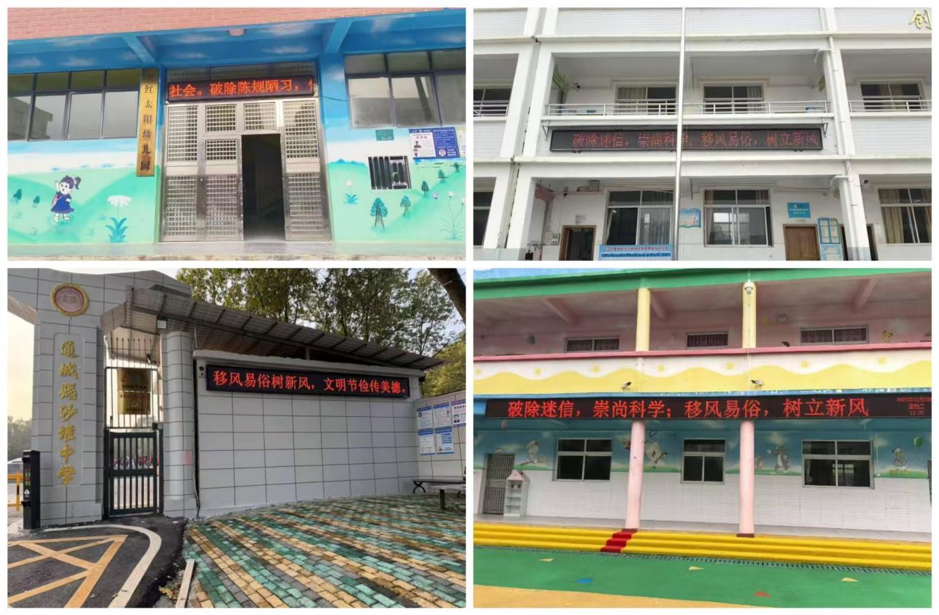此外,沙堆镇还充分发挥了学校教育的辐射带动作用。校园内,电子屏滚动播放着倡导文明新风的标语,营造出浓厚的文化氛围。通过将移风易俗教育融入日常教学活动,引导广大师生树立正确的价值观和道德观,并借助学生向家庭传递文明理念,实现“教育一个孩子,带动一个家庭,影响整个社会”的良好效应。