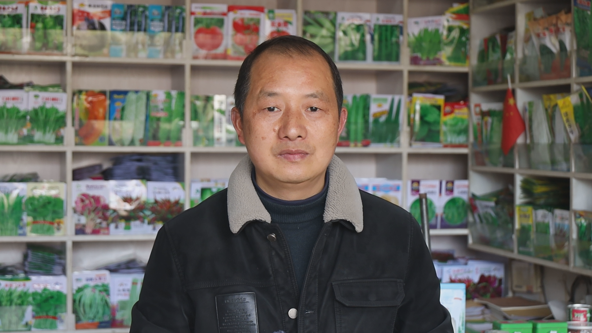 新民种籽批发店经销商 余新民:目前我们家的种子全部储备齐全了,储备了几千公斤在家,一天能卖二三百公斤。卖的最好的是苋菜、空心菜、豆角之类的,这个主要的农作物玉米、棉花、大豆之类,全部有国审号的,老百姓买的时候可以看清上面的国审号及生产日期。