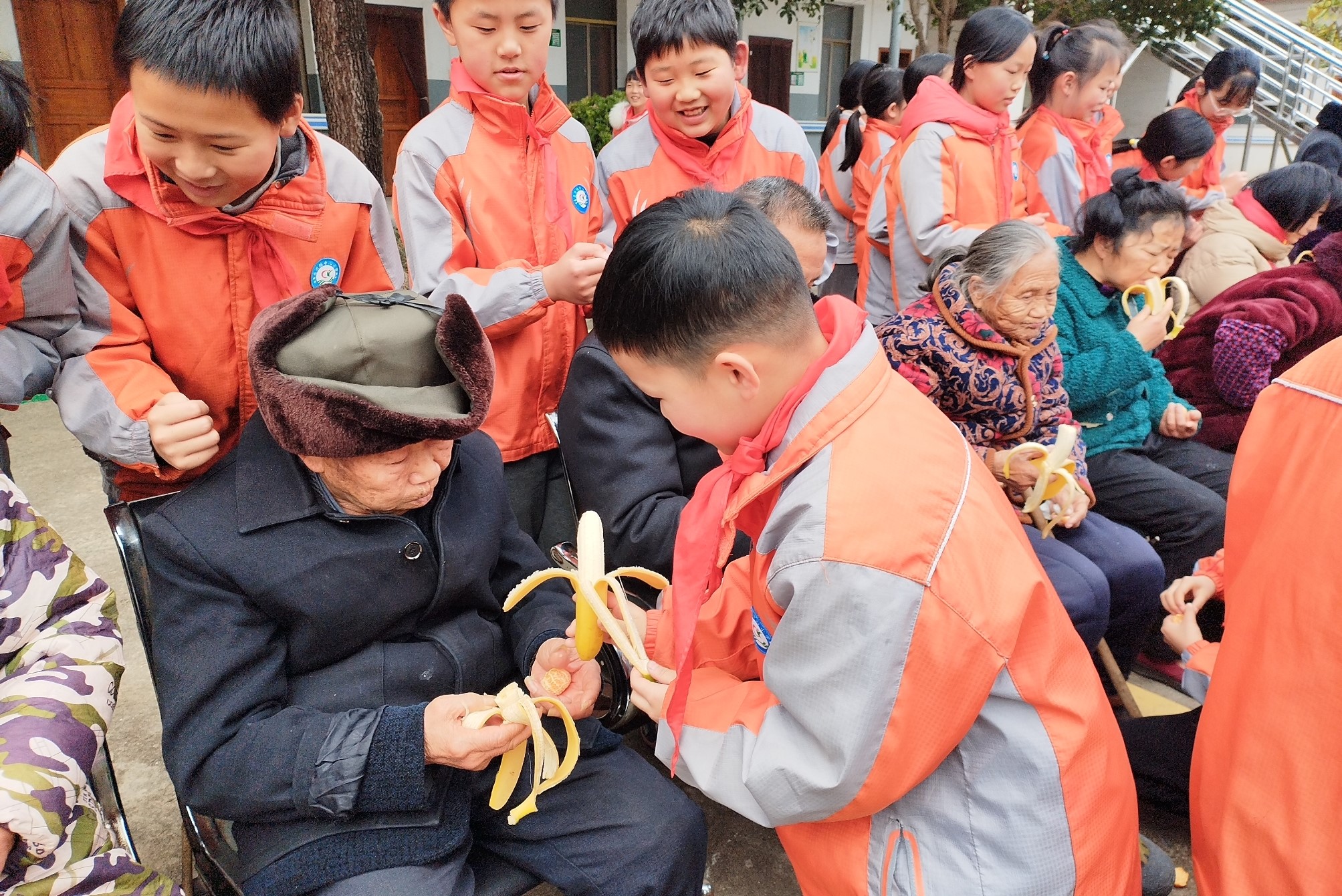 还有的学生围坐在老人身边,给他们按摩捶背,陪他们聊天,耐心倾听老人们讲述过去的故事。随后,孩子们为老人们表演精心准备的节目,歌声、笑声、掌声交织在一起,让平日里宁静的敬老院充满了欢声笑语。
