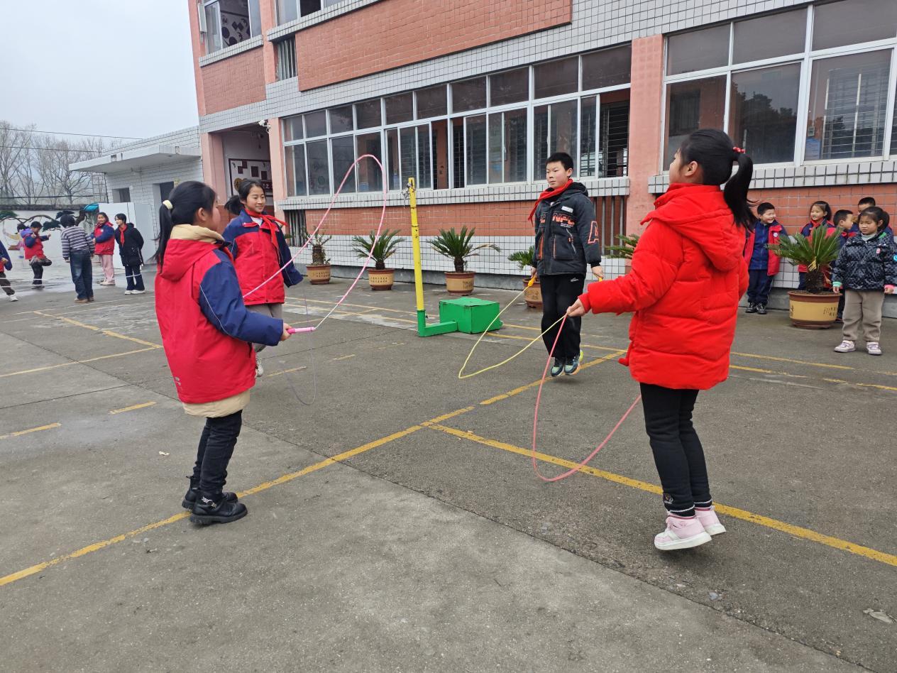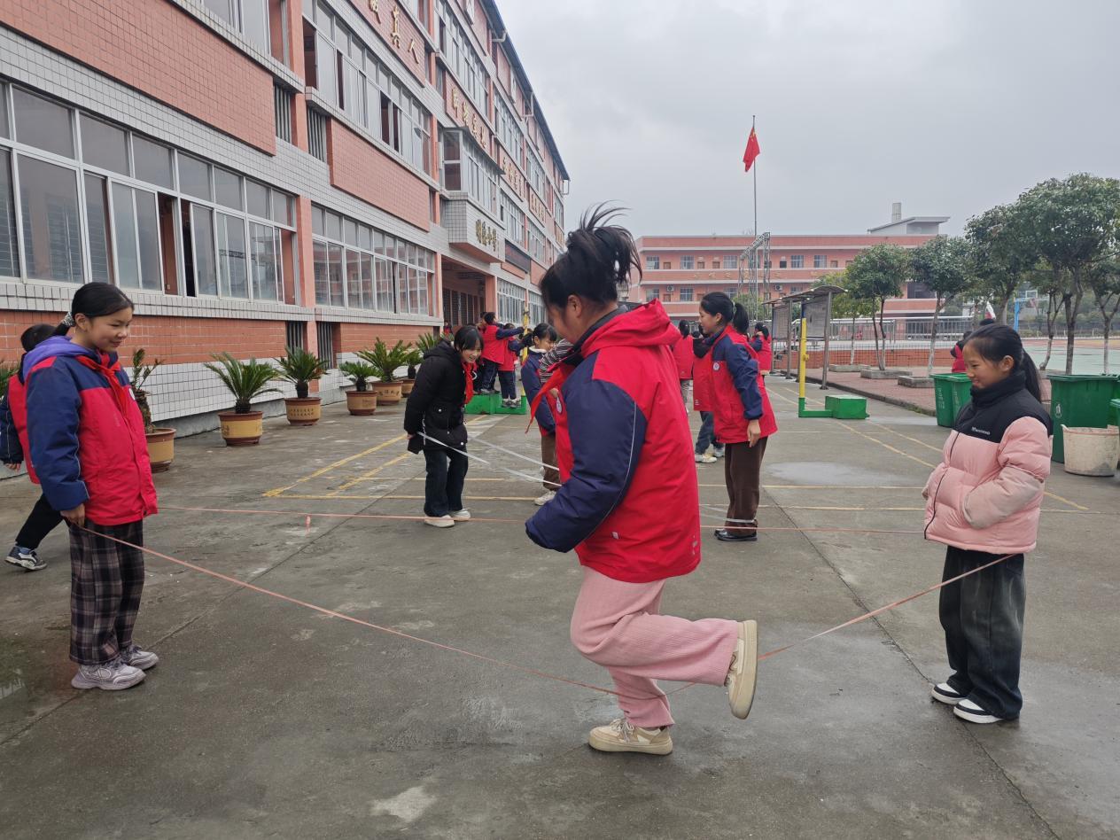 操场上,学生们个个热情洋溢,各展风采。二年级的小朋友们默契配合,在长绳的翻飞间尽情欢笑;六年级的同学们则专注地比赛跳短绳,小脸上洋溢着认真与坚持;乒乓球台前更是围满了跃跃欲试的小选手们,清脆的击球声此起彼伏,展现着他们对运动的无限热爱。