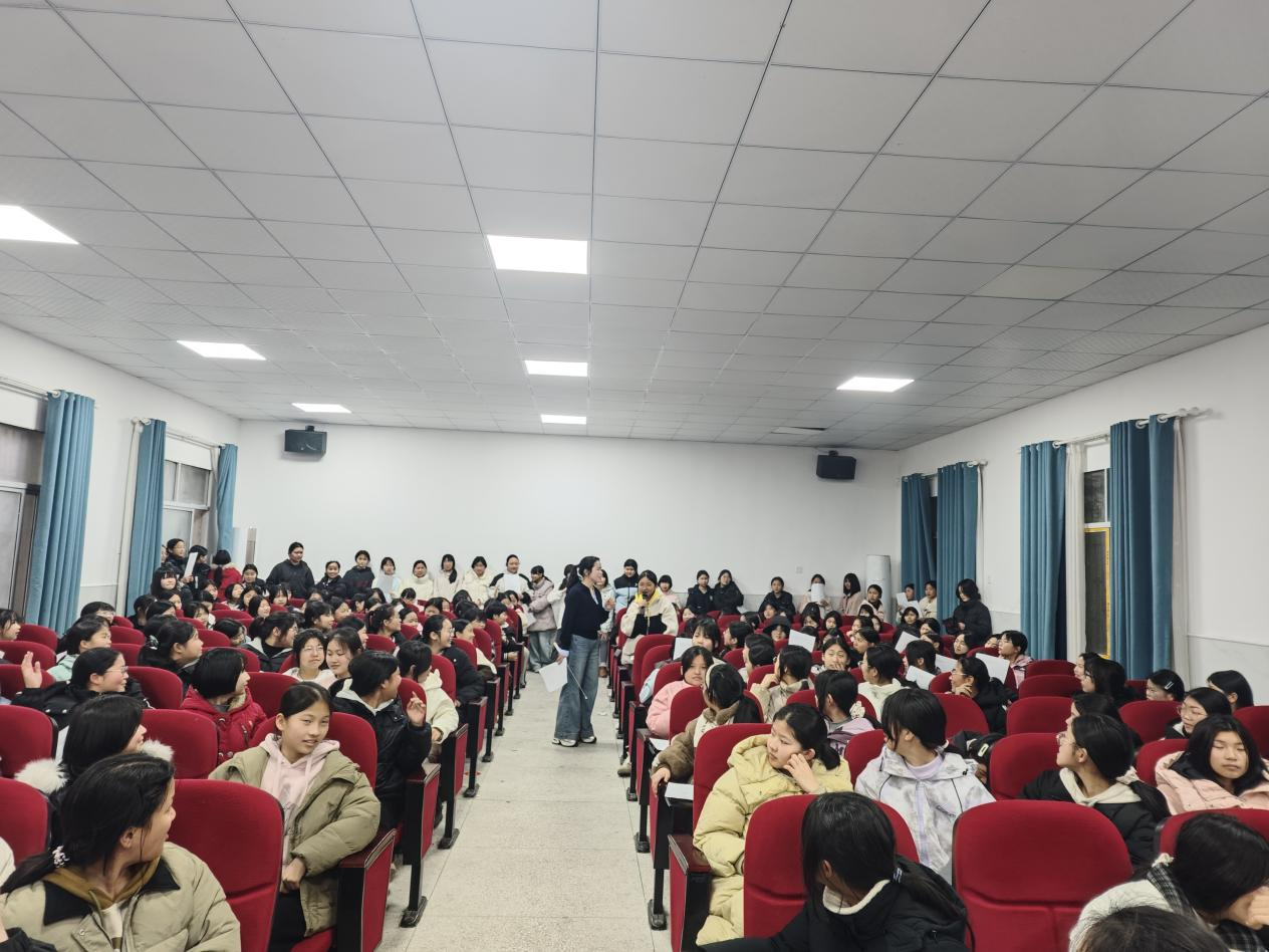 讲座以互动和讲解的方式,介绍了乳房发育、月经来潮等生理特征,纠正“月经排毒”“经期不能洗澡”等误区,提醒女生经期避开剧烈运动,调节饮食与情绪,记录月经周期。倡导学生从健康饮食、规律作息等小事做起,践行自我关爱,还推出“自我关爱打卡计划”,鼓励学生通过一个月的行动养成终身习惯。讲座最后,女生们集体宣读“我就是这样一个女生,我就爱这样的自己!”的口号,现场氛围热烈。