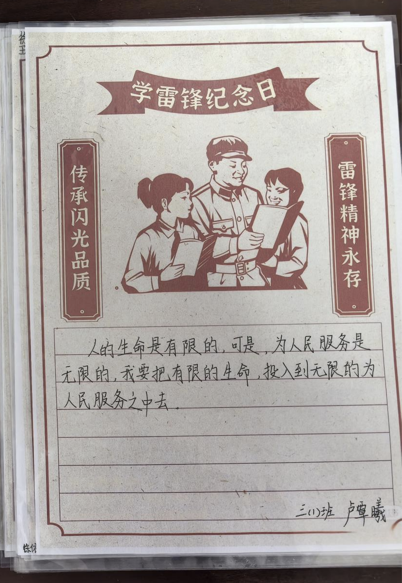 除了社会实践志愿服务,学校还开展了形式多样的校内活动,如“笔下的雷锋”“雷锋的24小时”艺术评比,鼓励学生通过绘画、语录摘抄等形式,描绘心中的雷锋形象,讲述雷锋故事。同时,学校借此契机开展传承章、节约章争章活动,激发学生参与热情。