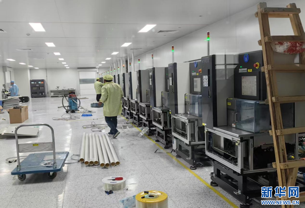 图为安芯美科技(湖北)有限公司新设备正在安装调试。新华网 肖进安摄